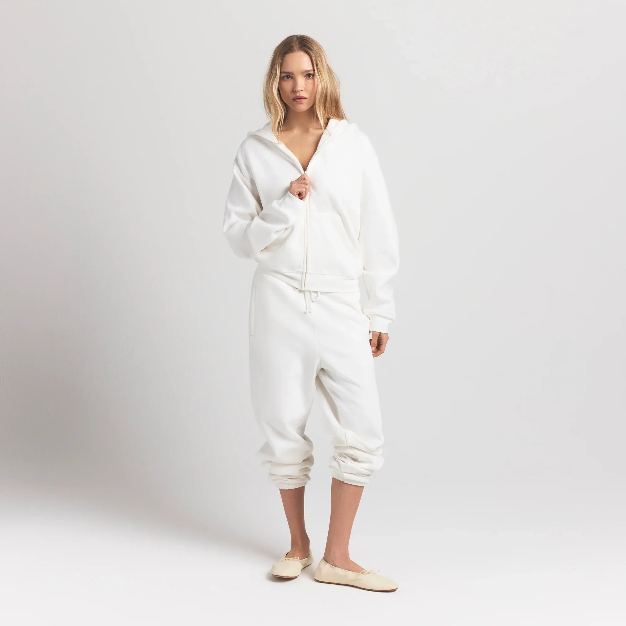 SKIMS COTTON FLEECE CLASSIC ZIP UP HOODIE | MARBLE
