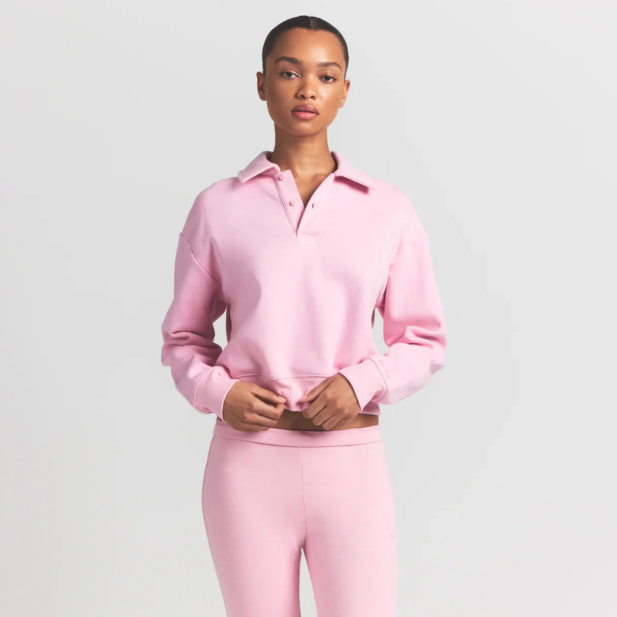 SKIMS COTTON FLEECE POLO SWEATSHIRT | HALITE