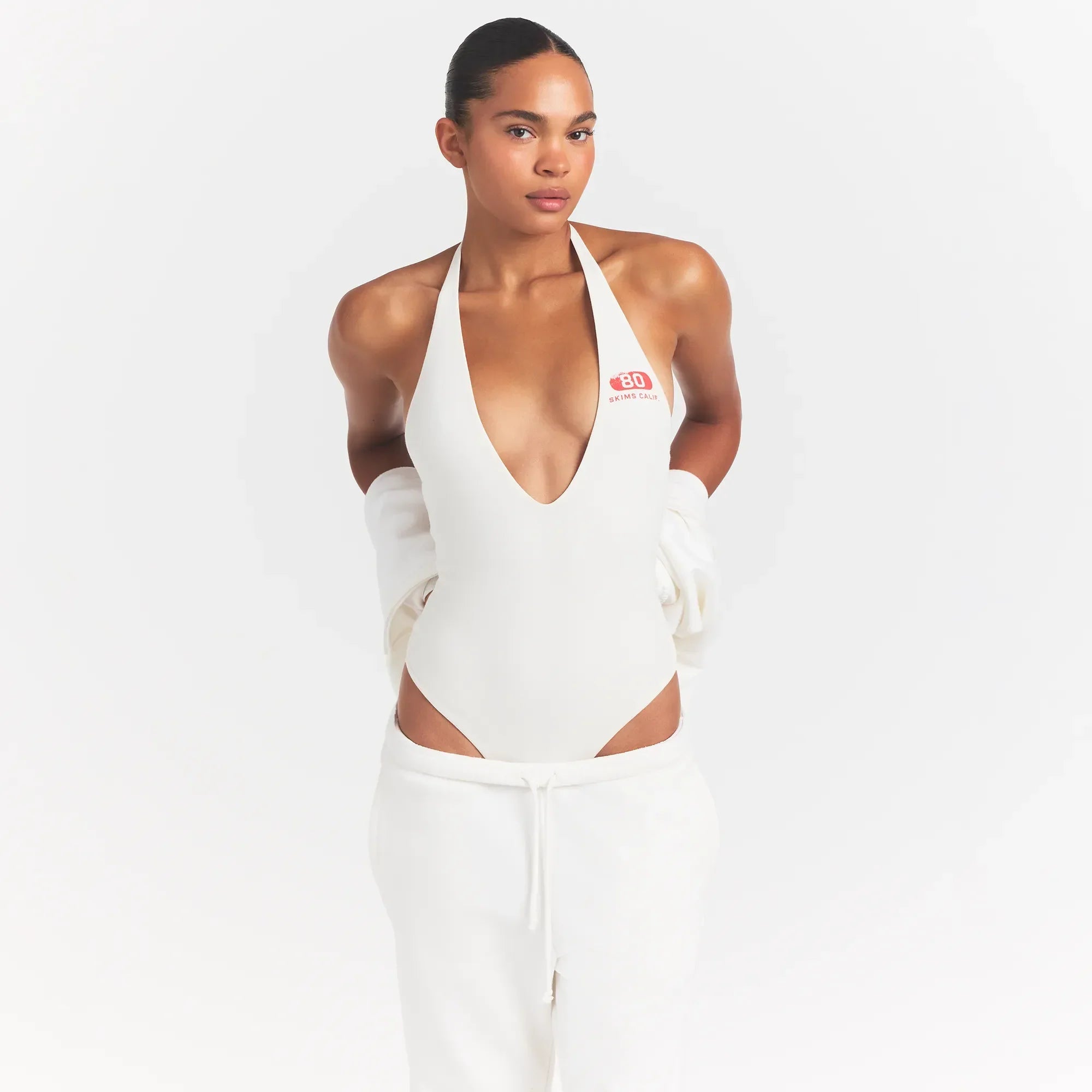 COTTON JERSEY DEEP PLUNGE HALTER BODYSUIT | MARBLE SKIMS EIGHTY