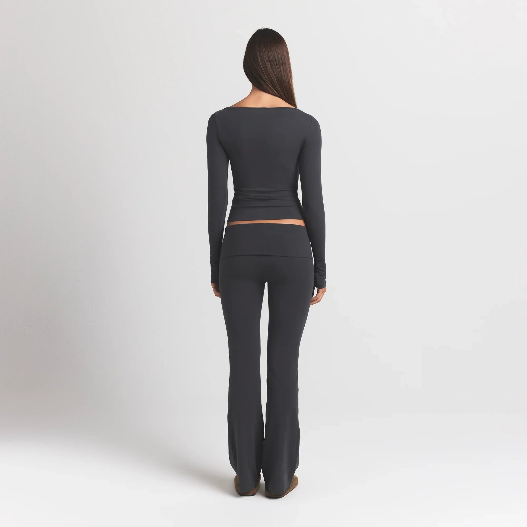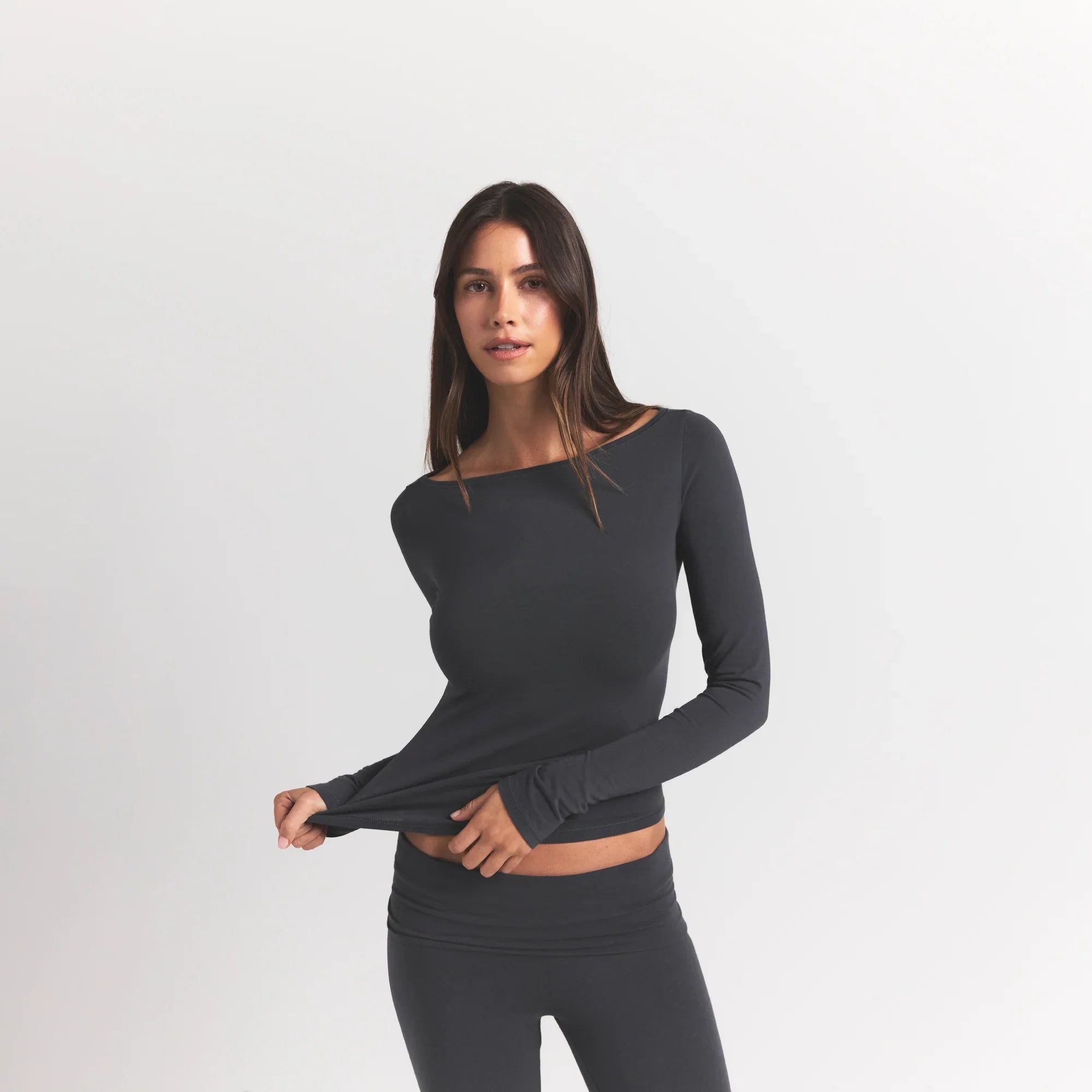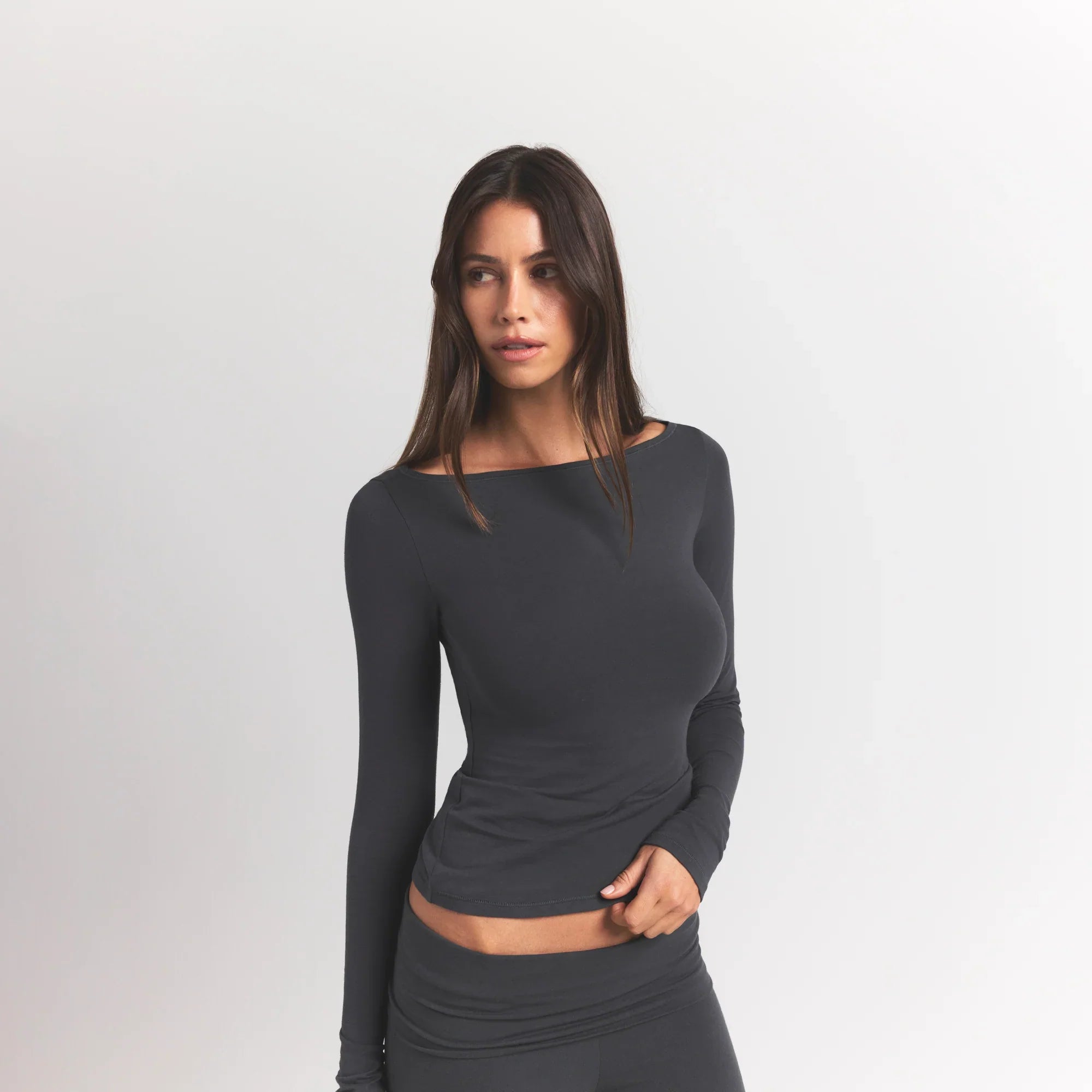 SKIMS COTTON JERSEY LONG SLEEVE BOATNECK TOP | ASH