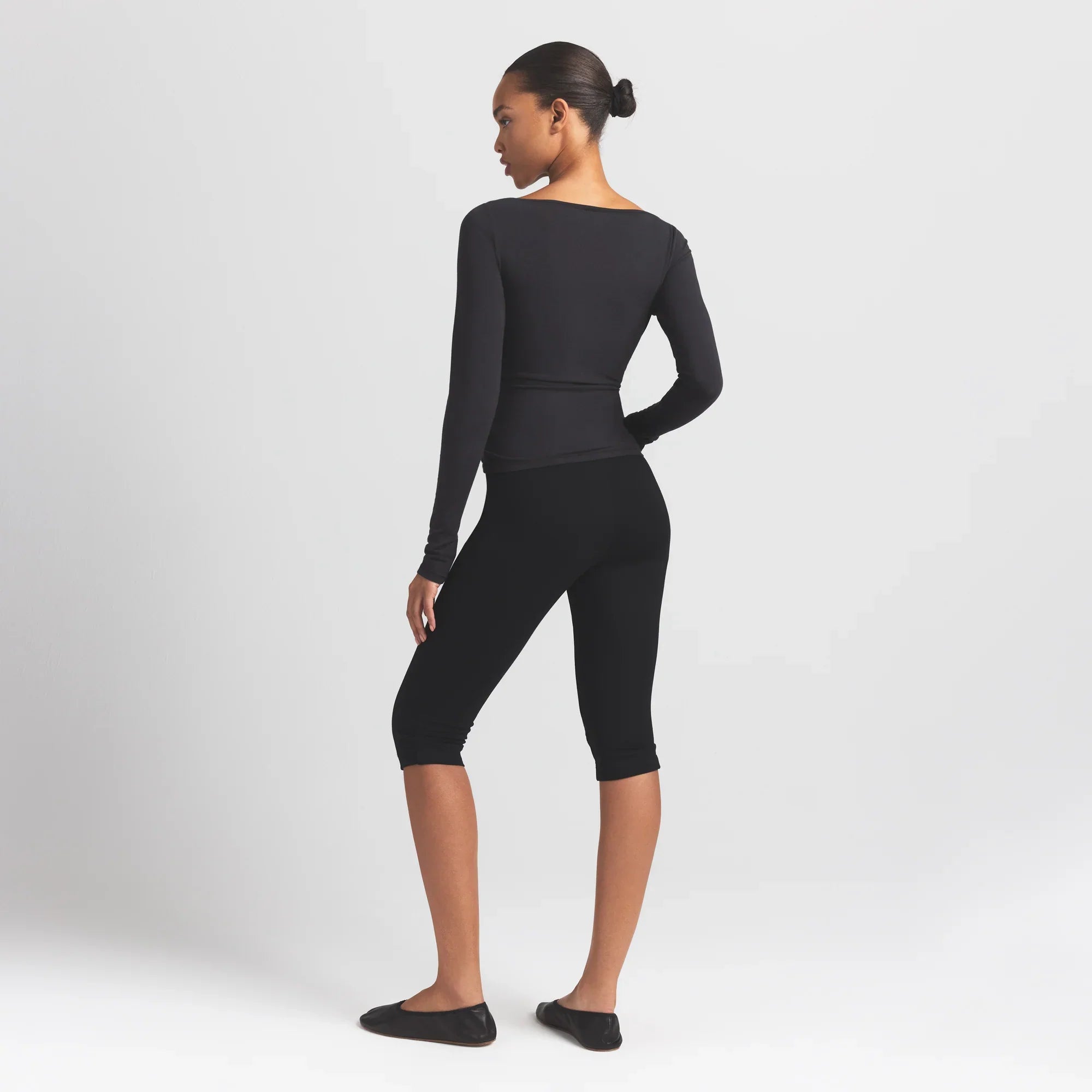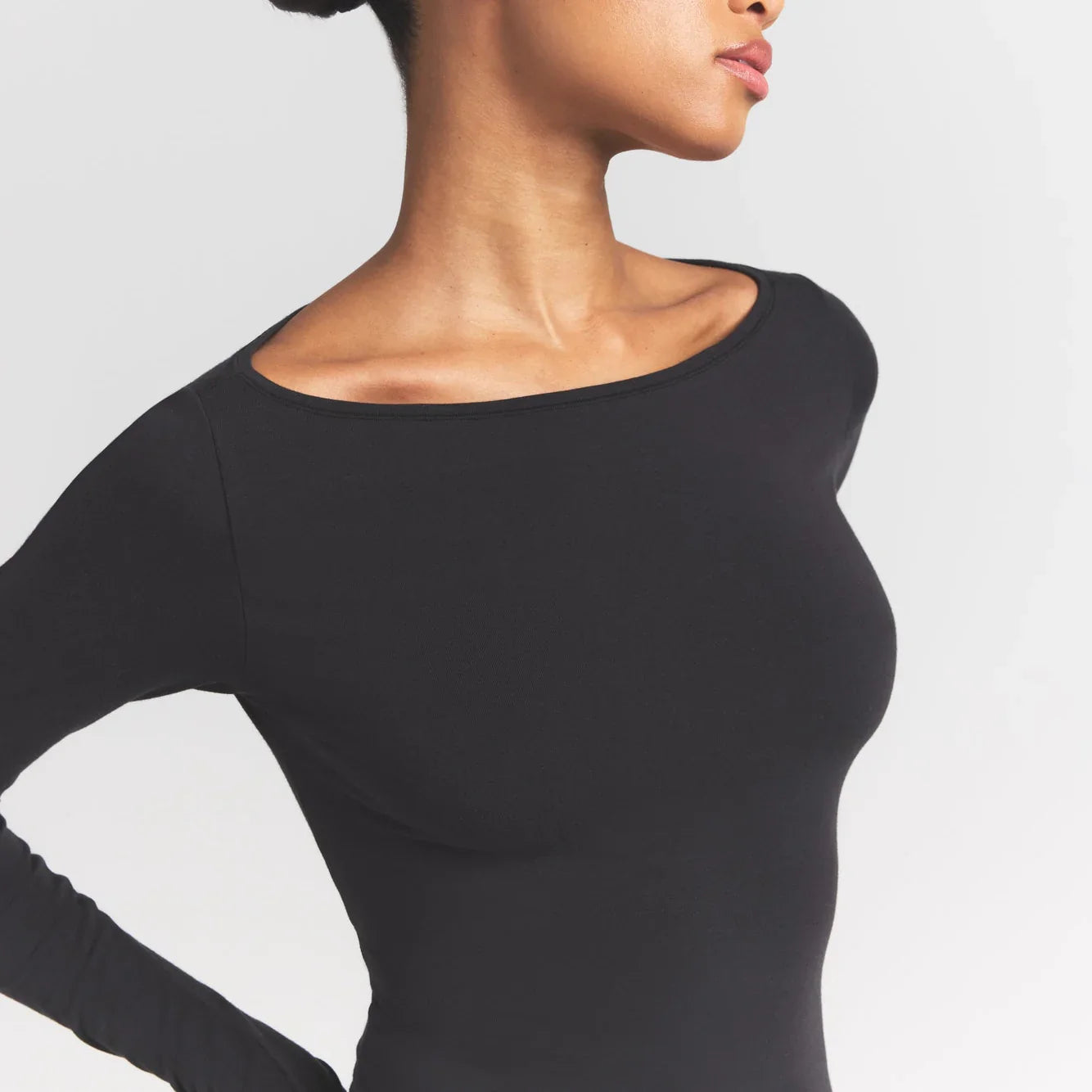 SKIMS COTTON JERSEY LONG SLEEVE BOATNECK TOP | SOOT