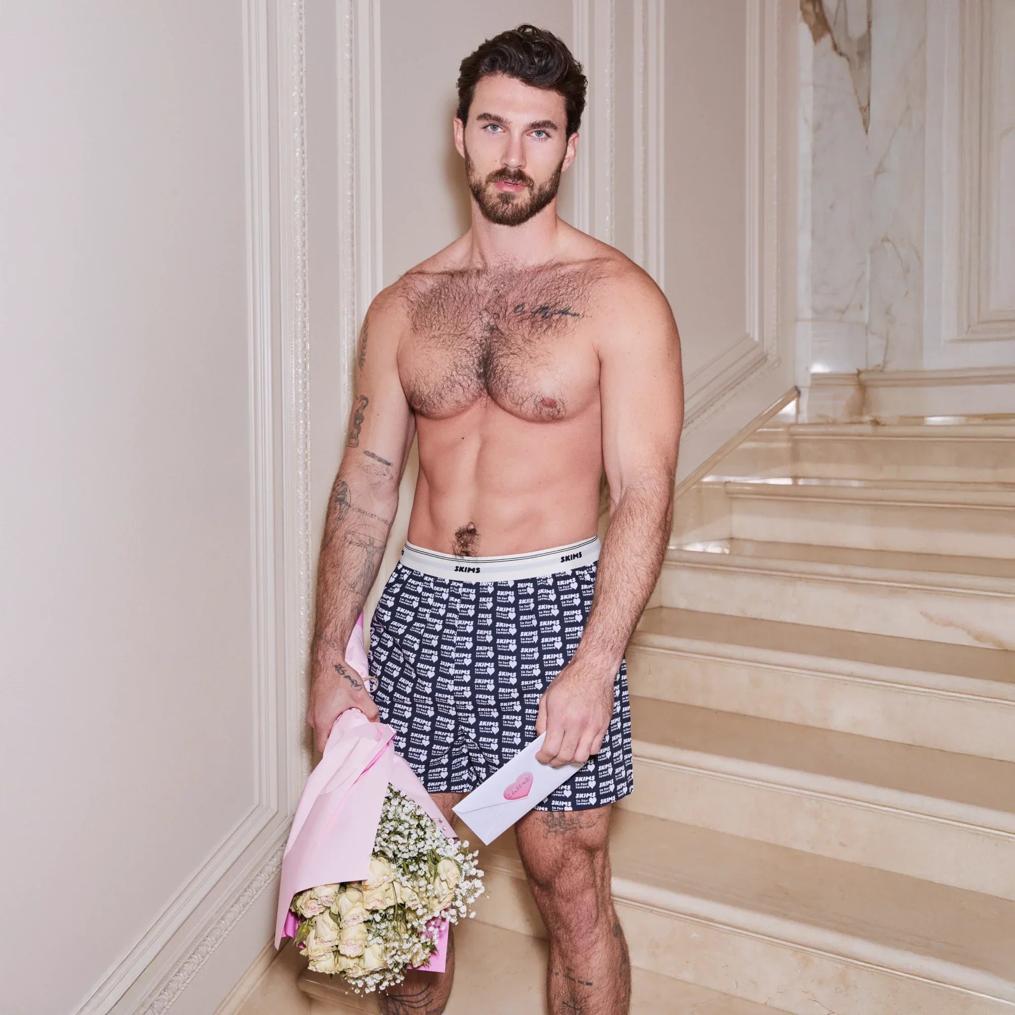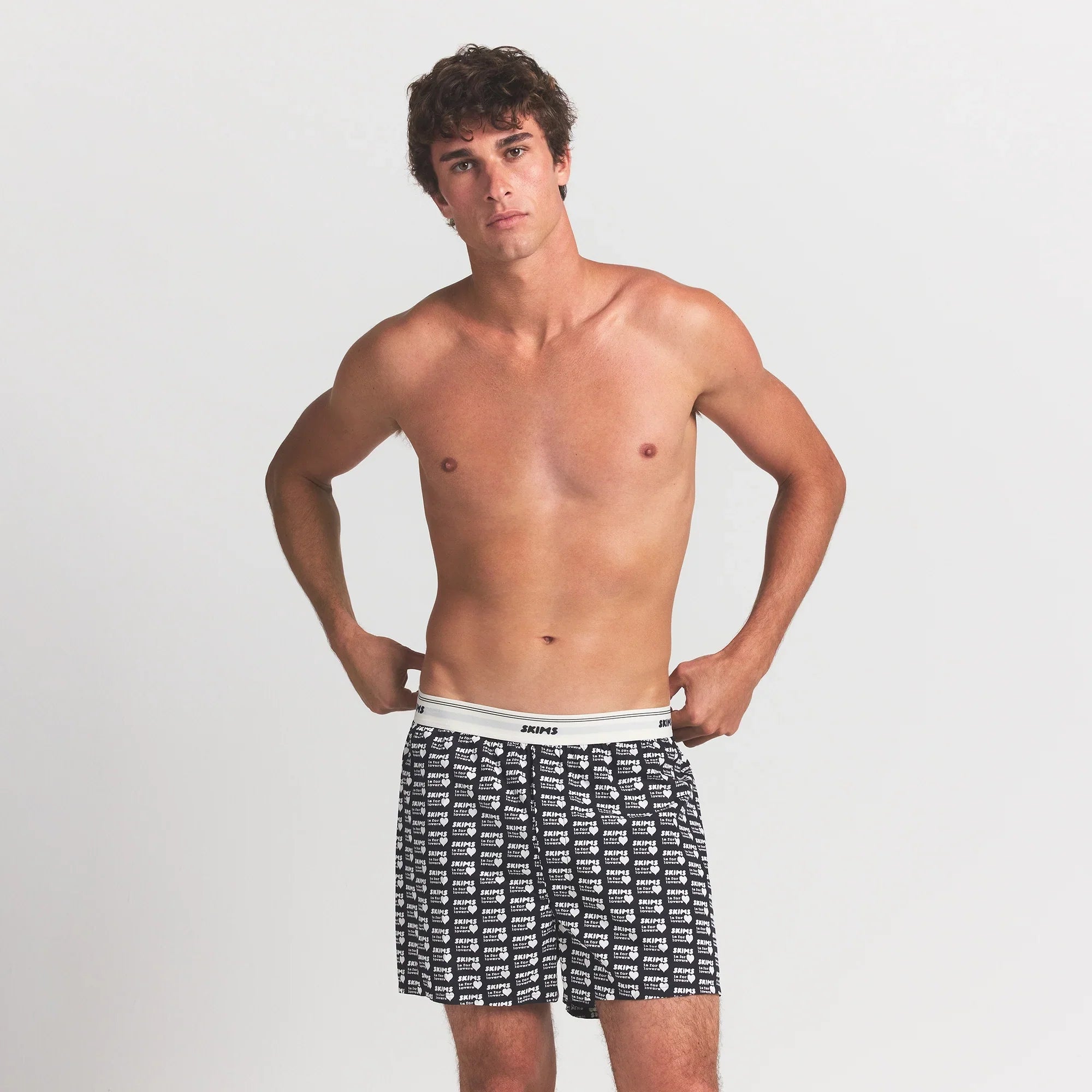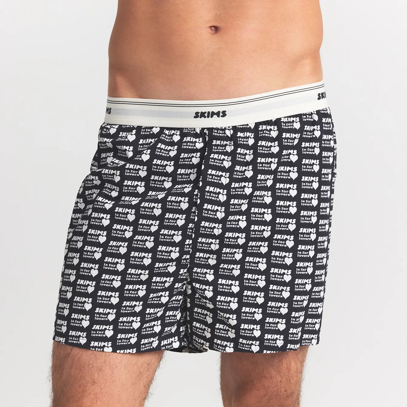 COTTON POPLIN MENS LOGO BAND BOXER | OBSIDIAN SKIMS LOVERS PRINT