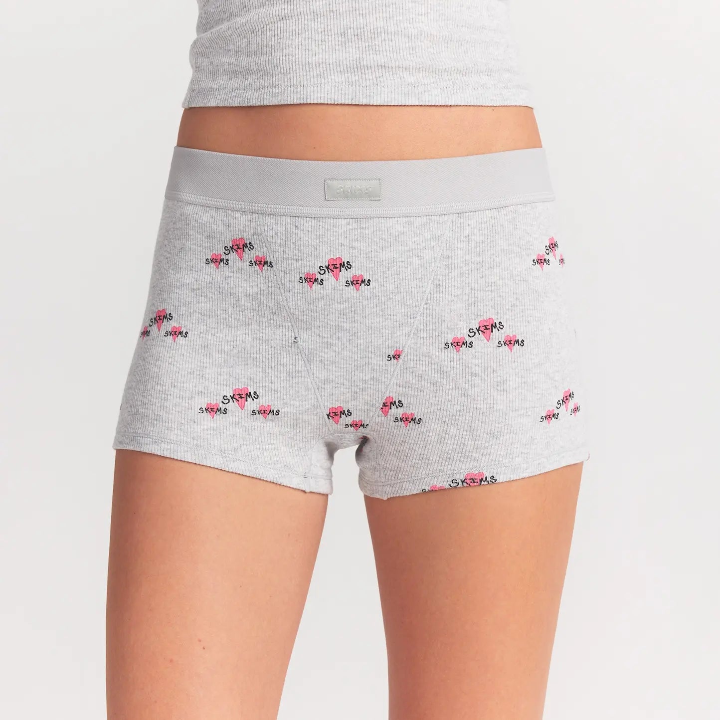 SKIMS COTTON RIB TANK AND SHORT SET | LIGHT HEATHER GREY TRIPLE HEARTS