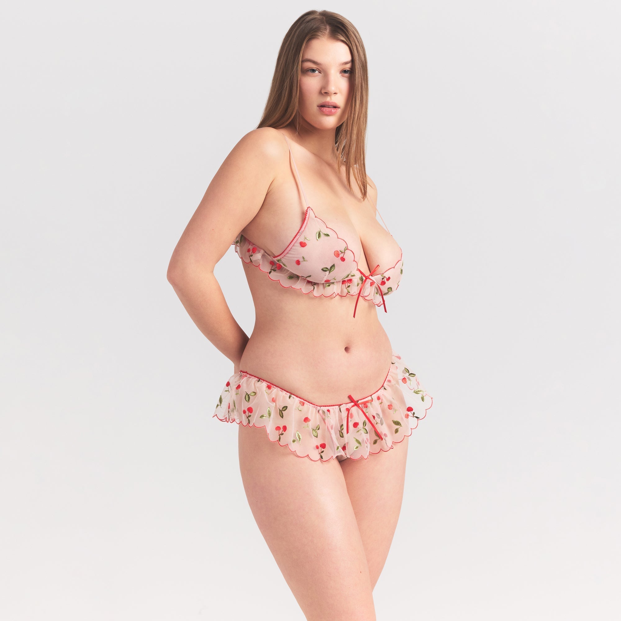 SKIMS EMBROIDERED TULLE SKIMPY TRIANGLE BRALETTE | PRIMROSE CHERRY TULLE