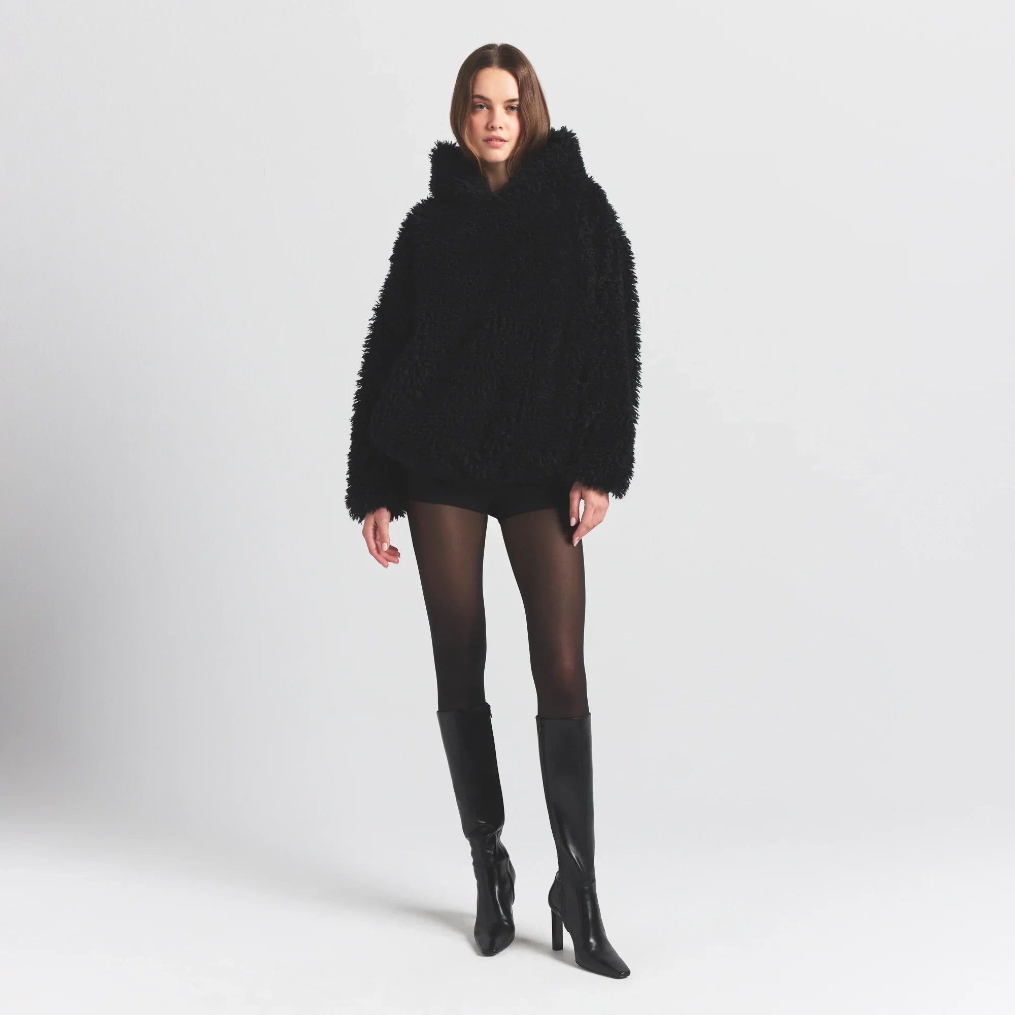 Bu yumuşak peluş kapüşonlu sweatshirt, hem içte hem dışta tam konfor sunan ultra yumuşak bir his ile tasarlanmıştır. Geniş kesimi ve ayarlanabilir bungee etek detayı ile şıklığı ve rahatlığı bir araya getiriyor.