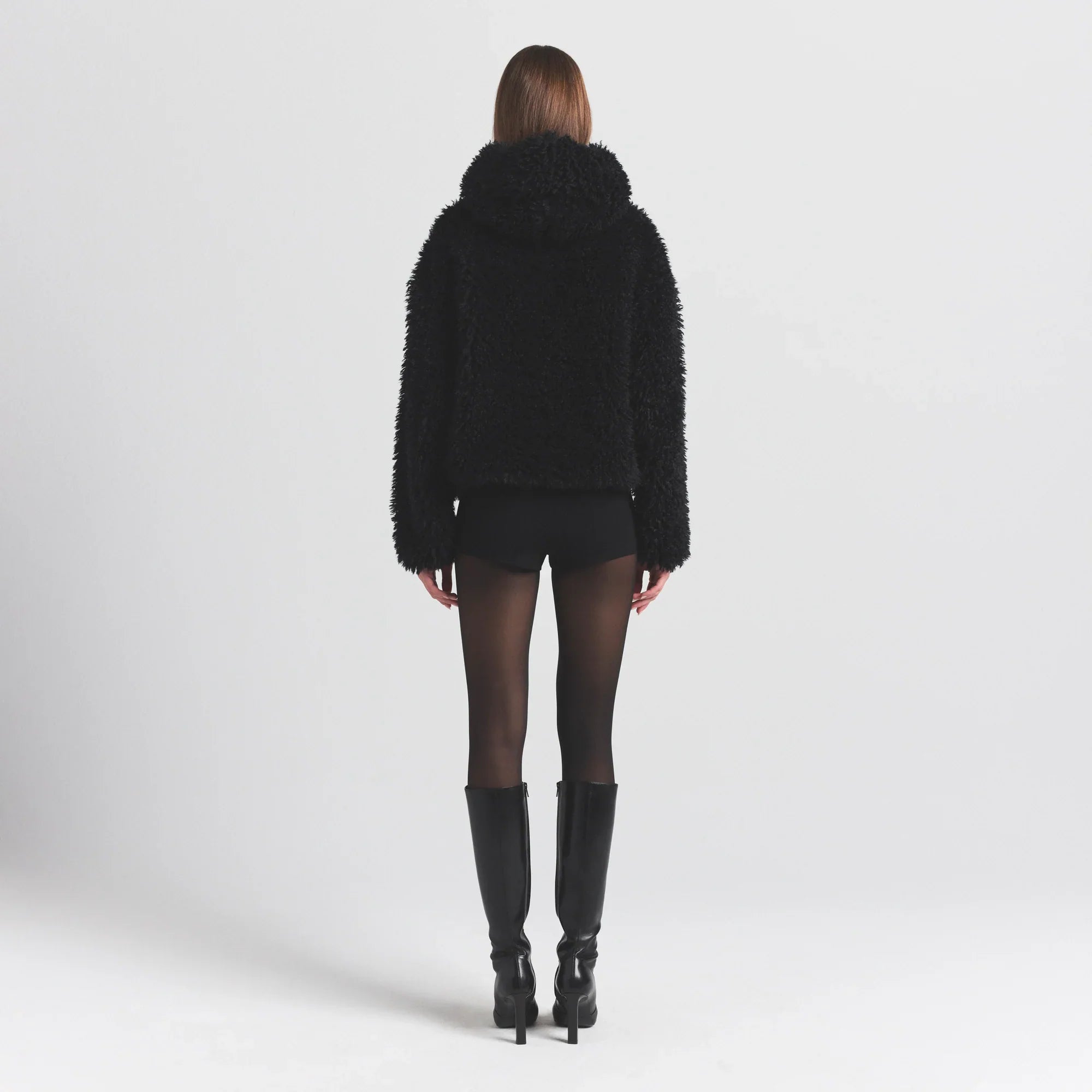 Bu kapüşonlu sweatshirt, lüks peluş kumaşı ve özenle işlenmiş detayları ile dikkat çekiyor. Estetik dengeyi sağlamak için tasarlanmış olan bu parça, hem şıklığı hem de konforu bir arada sunuyor.
