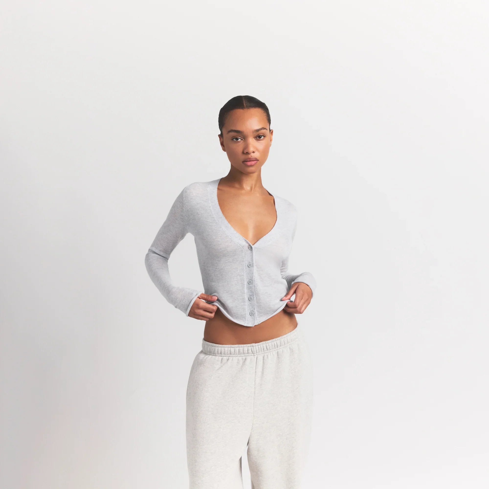 SKIMS FEATHERWEIGHT CASHMERE CARDIGAN | LIGHT HEATHER GREY
