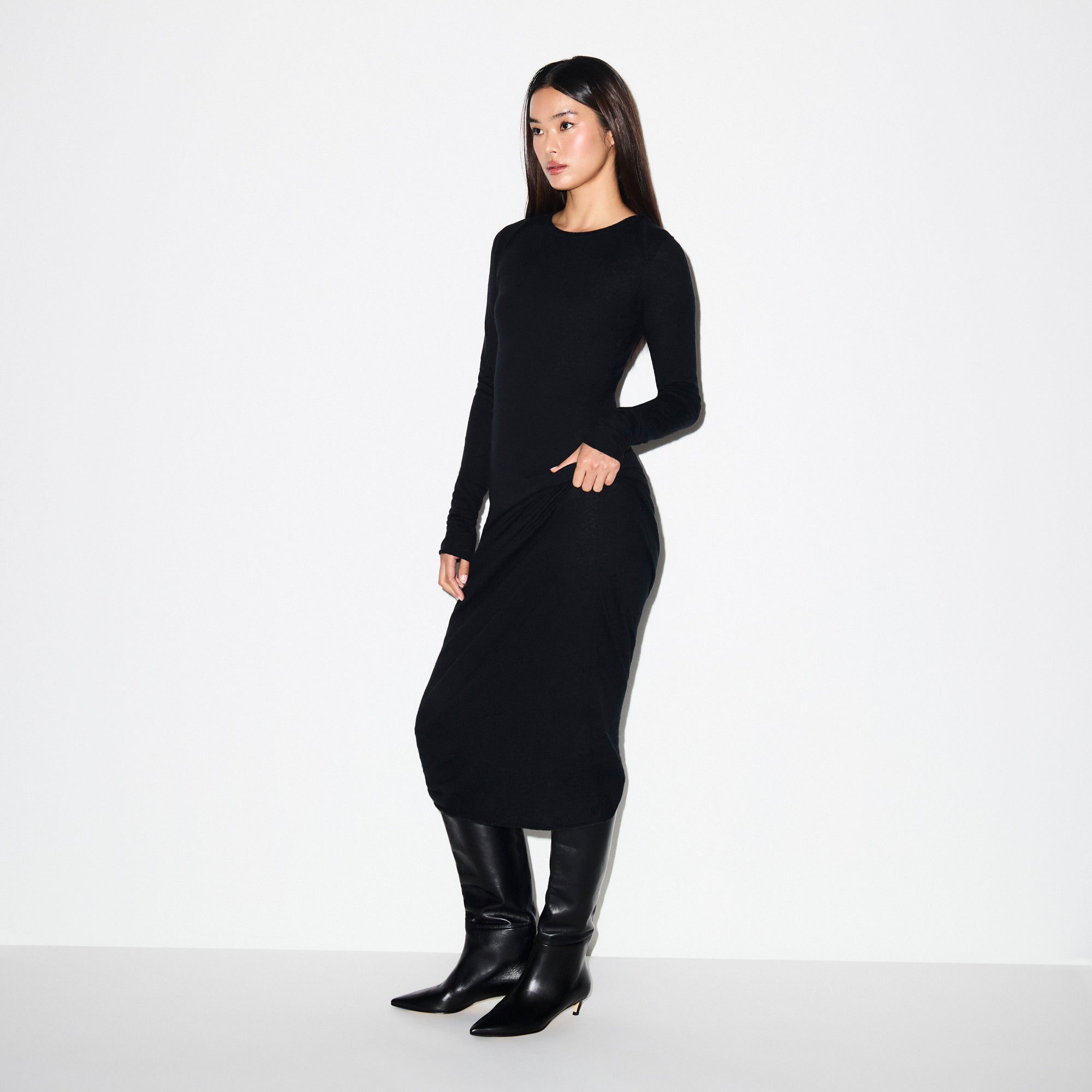 SKIMS FEATHERWEIGHT CASHMERE LONG DRESS | ONYX