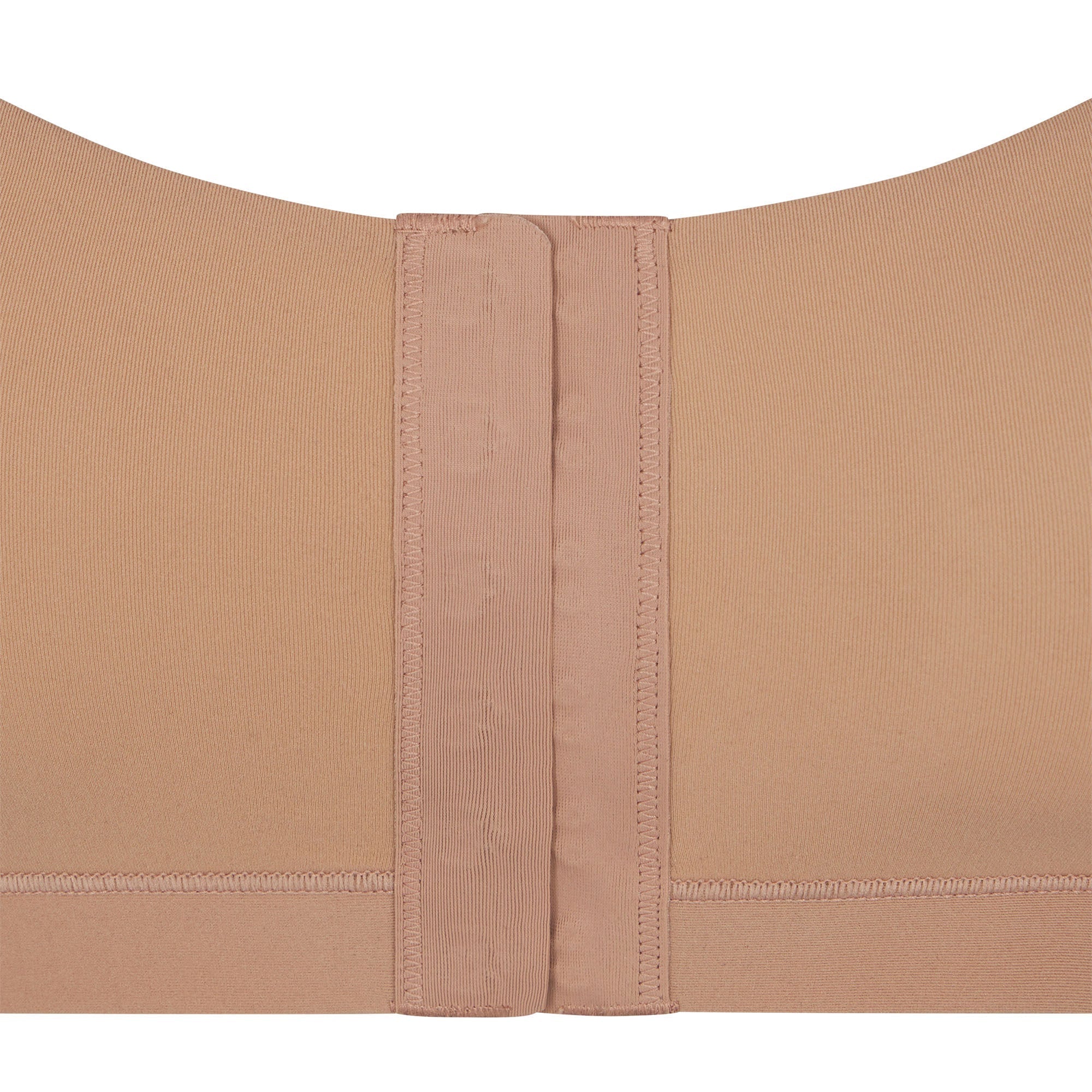SKIMS'in imza niteliğindeki yumuşak ve esnek scoop neck bralette'i, giyinmeyi kolaylaştıran ön kısımda yer alan çıtçıt kapama ile tasarlanmıştır.