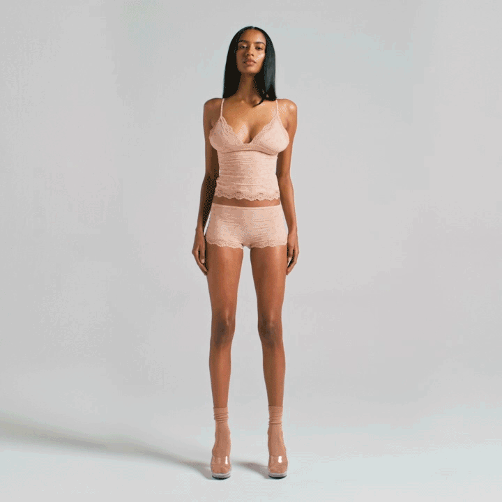 SKIMS FITS EVERYBODY LACE TRIANGLE CAMI AND BOY SHORT SET | MICA SKETCHED HEARTS