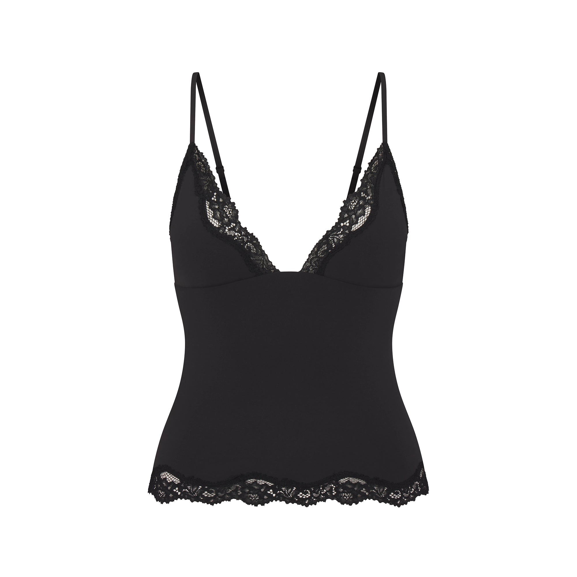 SKIMS FITS EVERYBODY LACE TRIANGLE CAMI AND BOY SHORT SET | ONYX