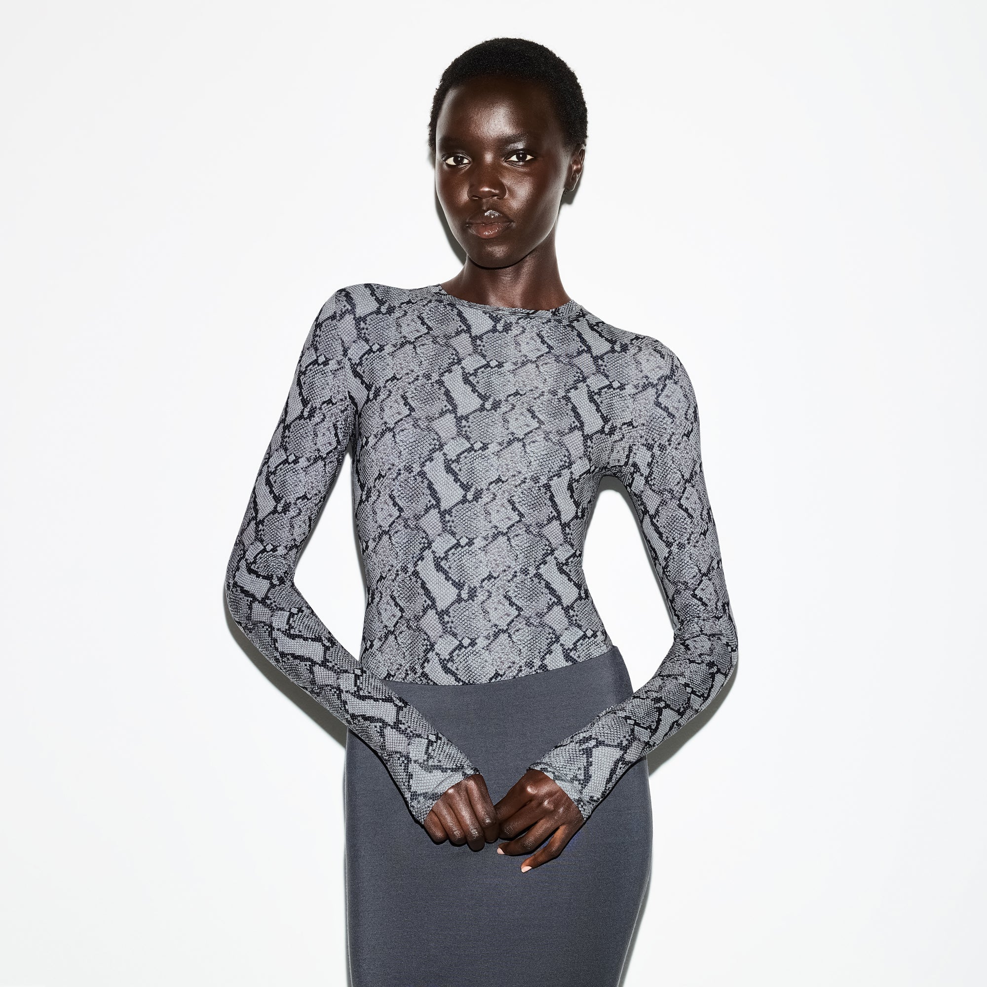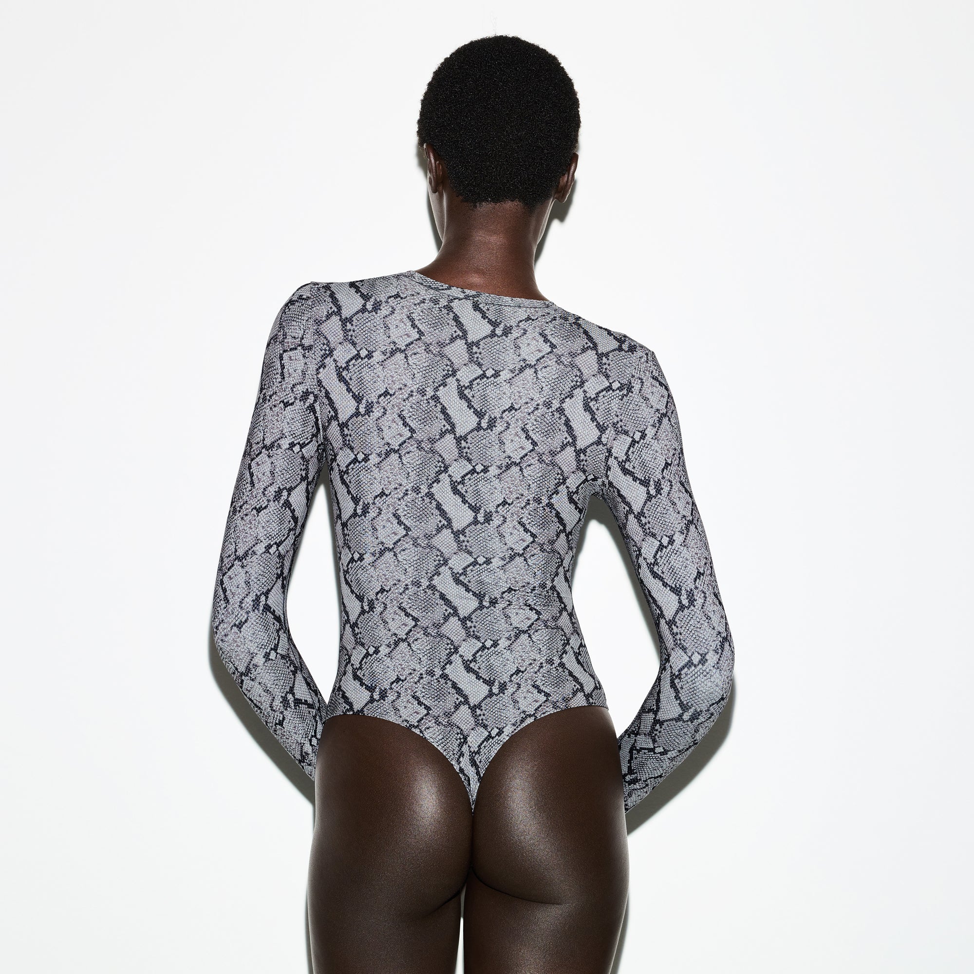 SKIMS FITS EVERYBODY LONG SLEEVE CREW NECK BODYSUIT | SHADOW SNAKE PRINT