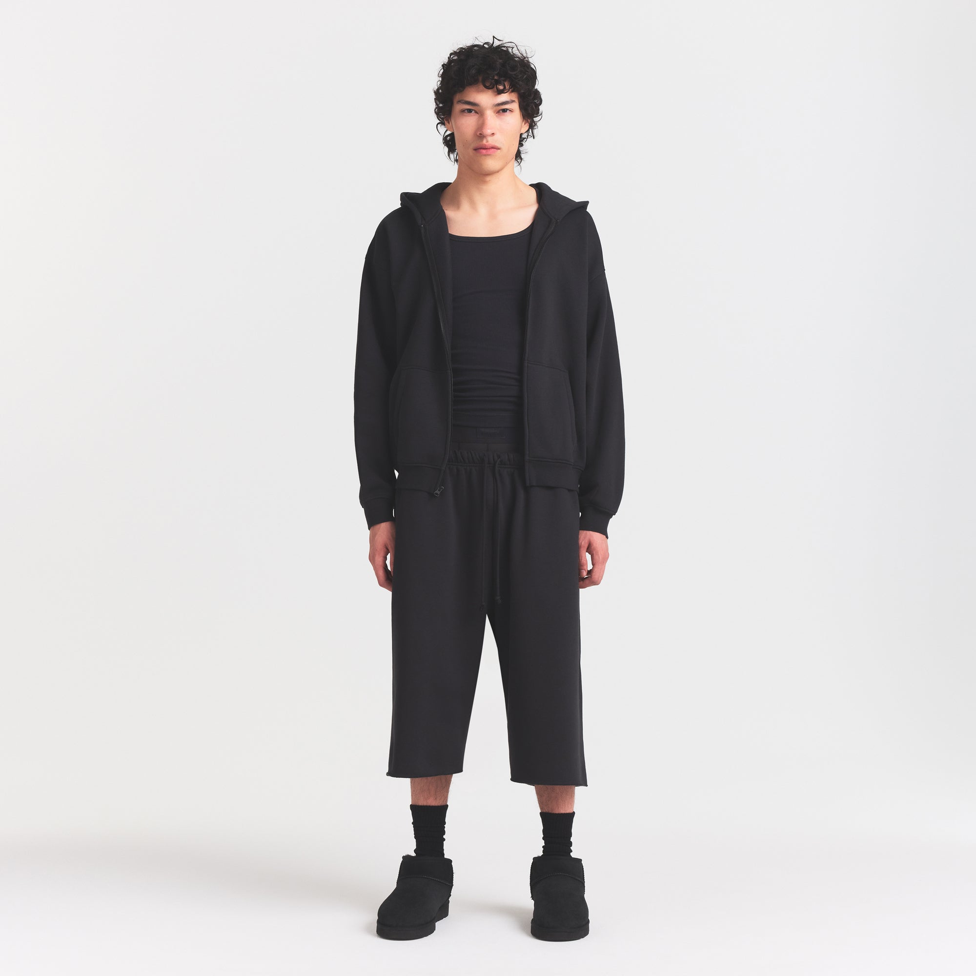 Ultra yumuşak polar kumaştan üretilen bu şort, gün boyu konfor sunan rahat ve uzun bir kesime sahiptir. SKIMS markasıyla iş birliği içinde tasarlanmıştır.