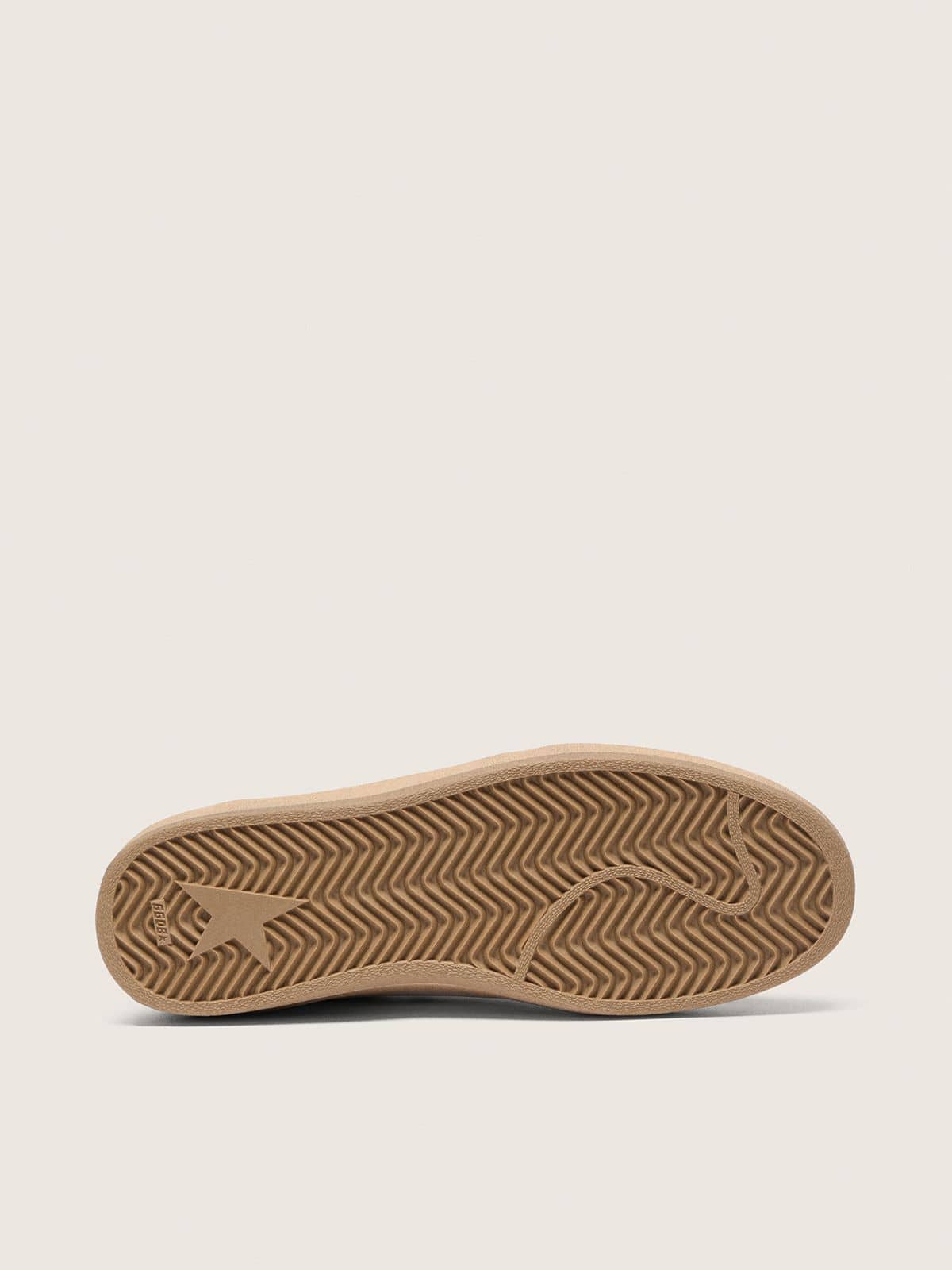 Beyaz nappa deri üst yüzey, pembe süet yıldız ve rose gold folyo topuk detayının birleşimi ürünün zarif ama genç ruhunu vurgular. Bej süet insertler, beyaz heavy metal fontlu "Sneakers" yazısı ve vintage finisaj estetik bir denge oluştururken el işçiliği detayları kalitenin altını çizer.