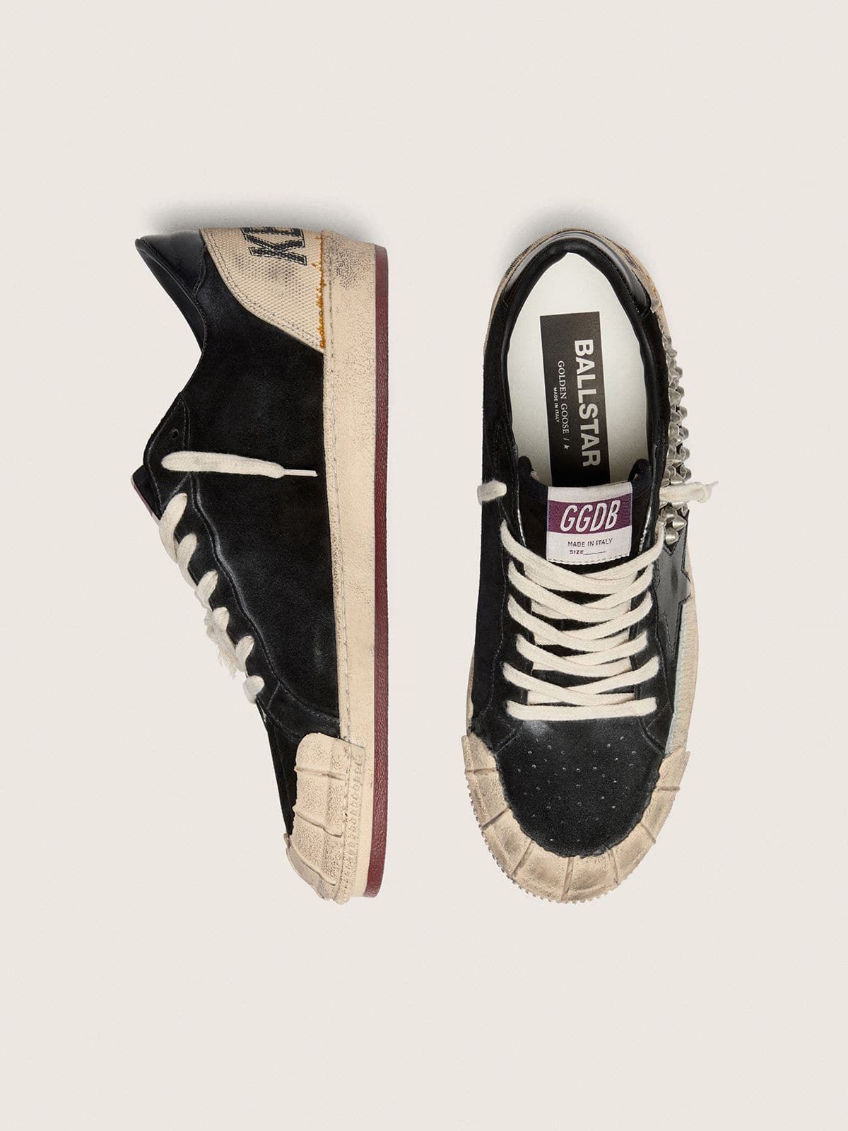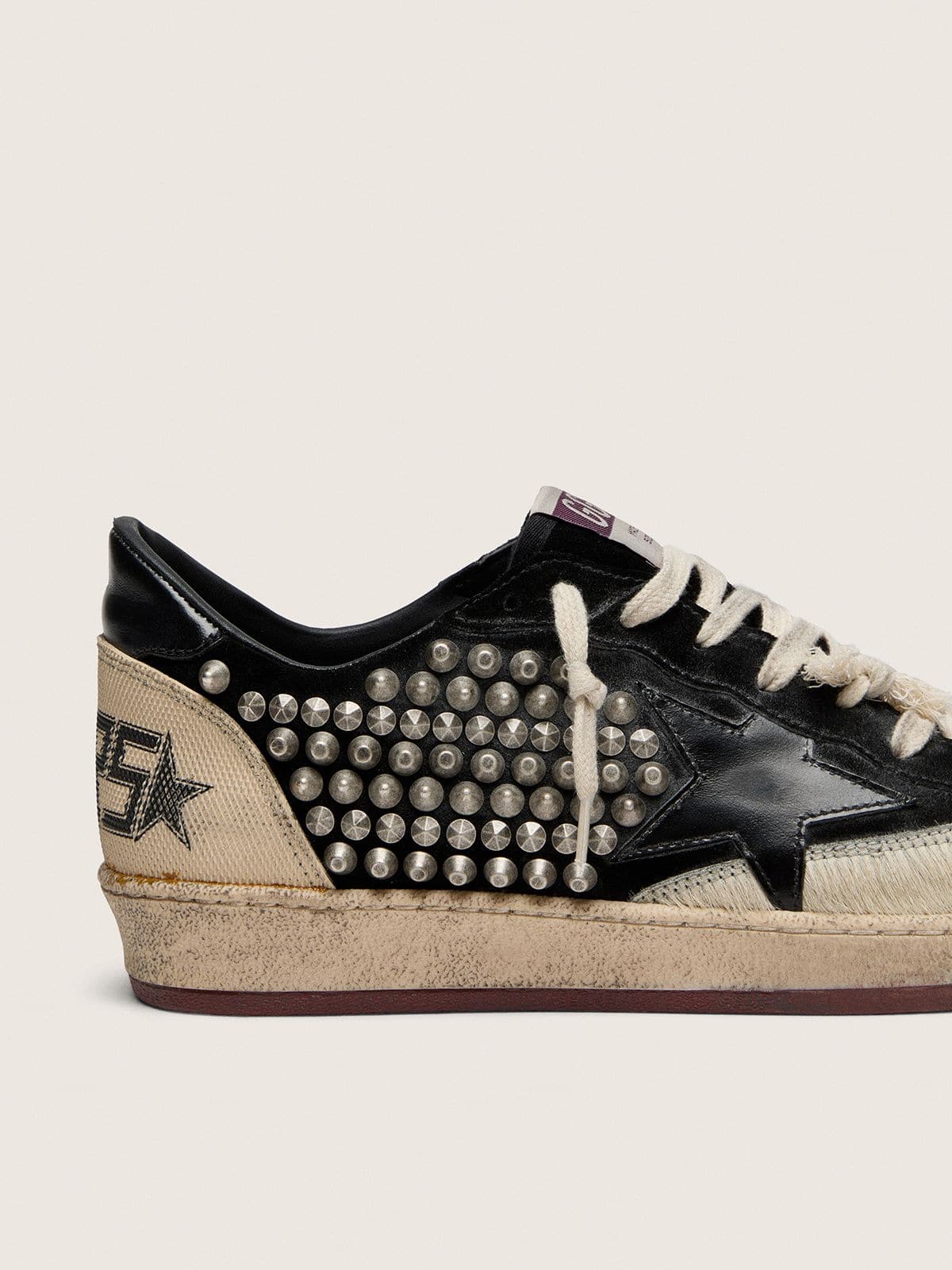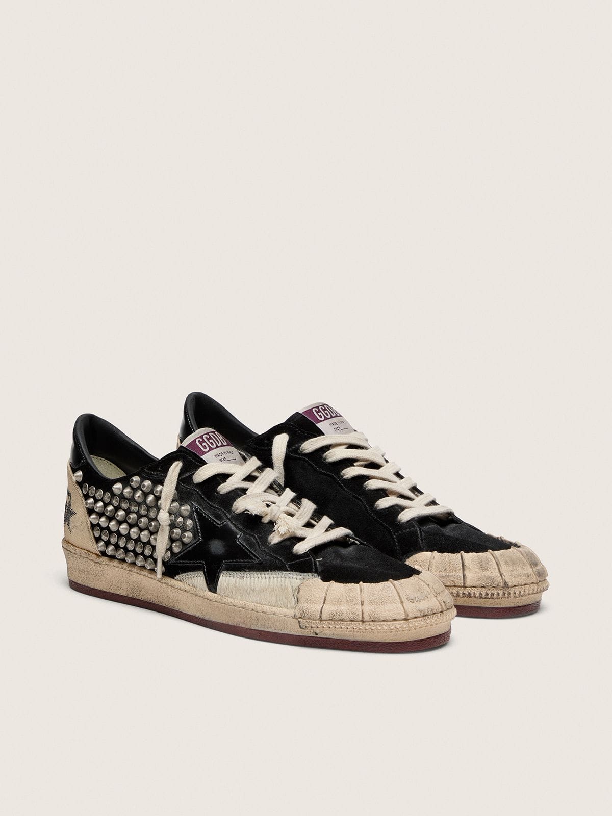 Golden Goose Men’s Ball Star Lab In Black Suede With Studs And Glossy Black Leather Star