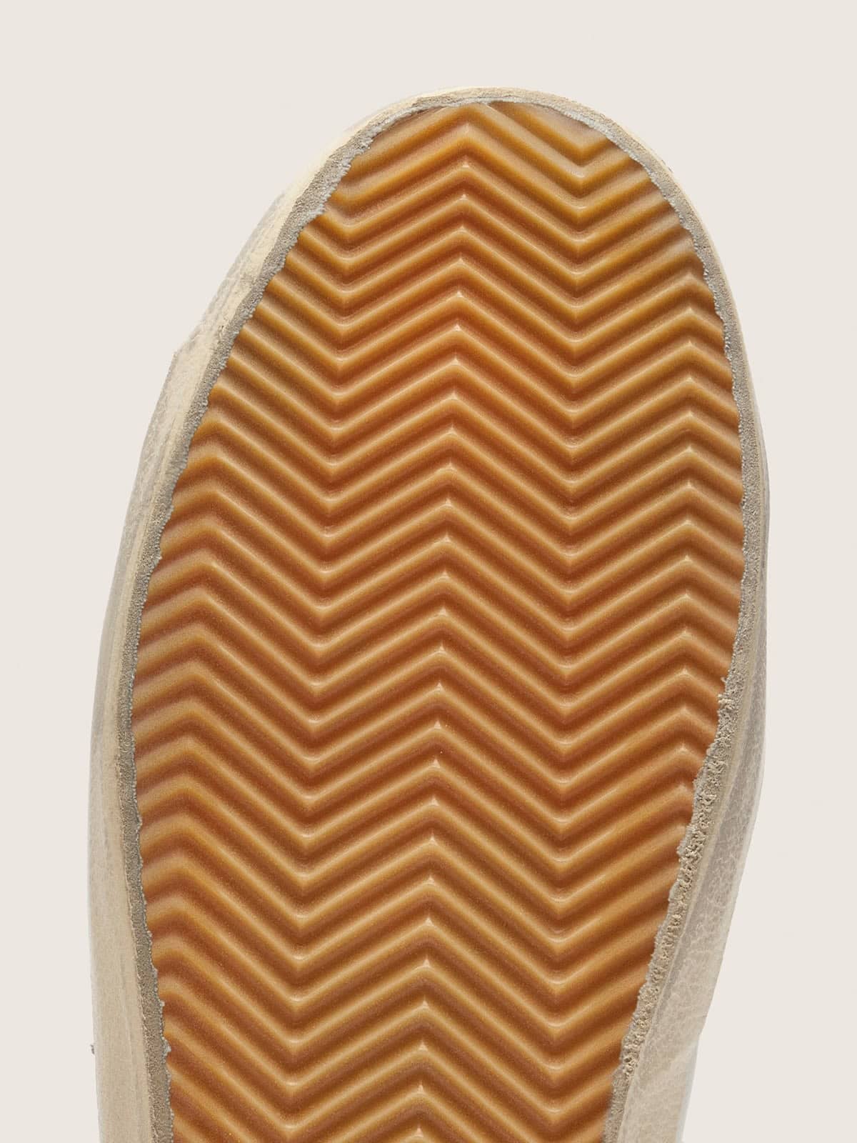 Üst yüzey %100 dana derisinden, iç astar ise %60 dana derisi ve %40 pamuk karışımından üretilmiştir; taban ise %100 kauçuktur. Süet yıldız detayı ve siyah deri topuk etiketi tasarıma ince bir kontrast katarken, metal perçinli yazı detayları modele karakter kazandırır. El yapımı işçilik ve İtalya üretimi, vintage eskitme finisajla birleşerek sofistike bir estetik dengesi yaratır.
