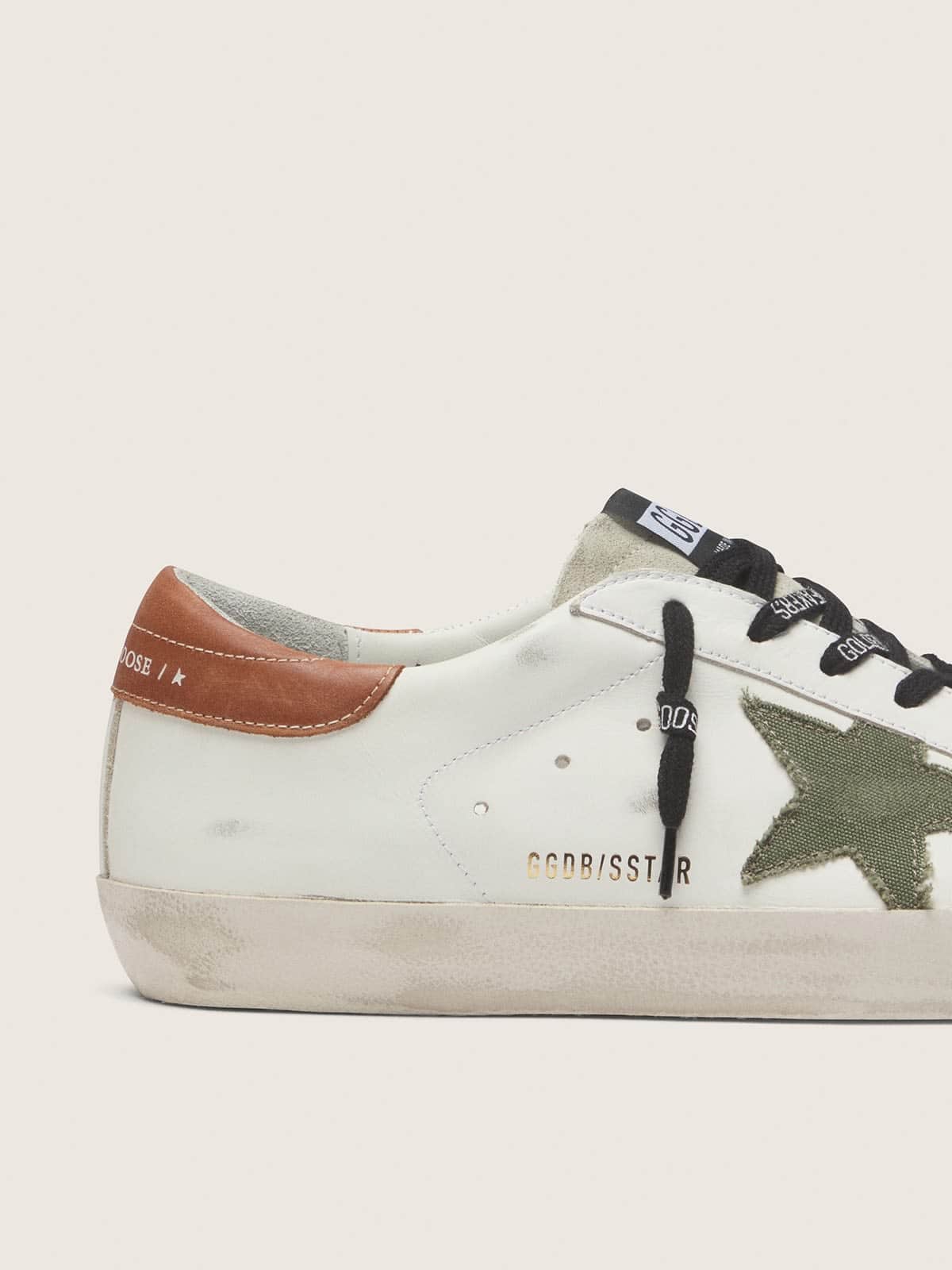 Golden Goose Men’s Super-Star With Star In Olive Green Canvas