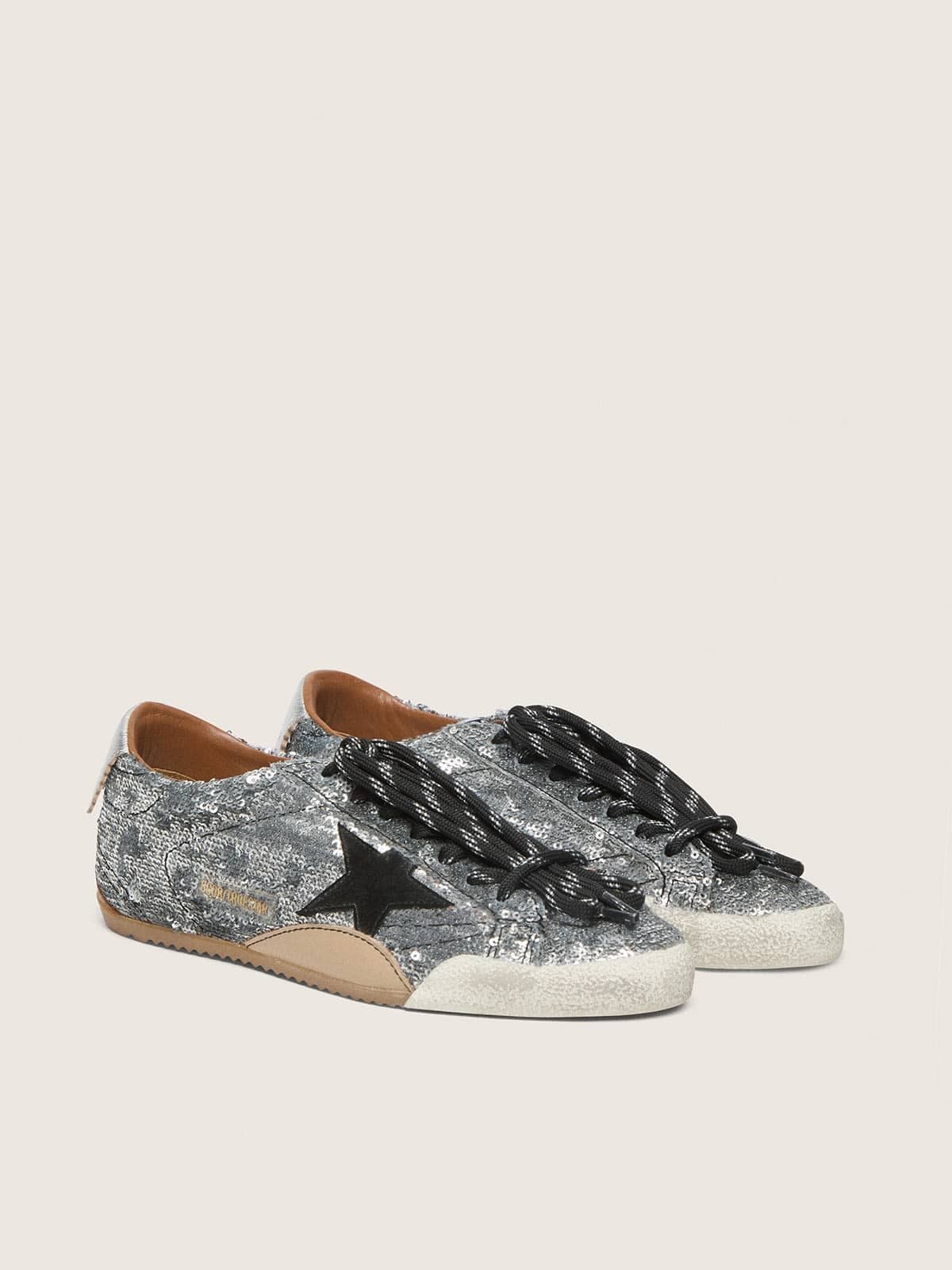 Golden Goose Men’s True-Star In Silver Sequins With Black Star And Silver Leather Heel Tab