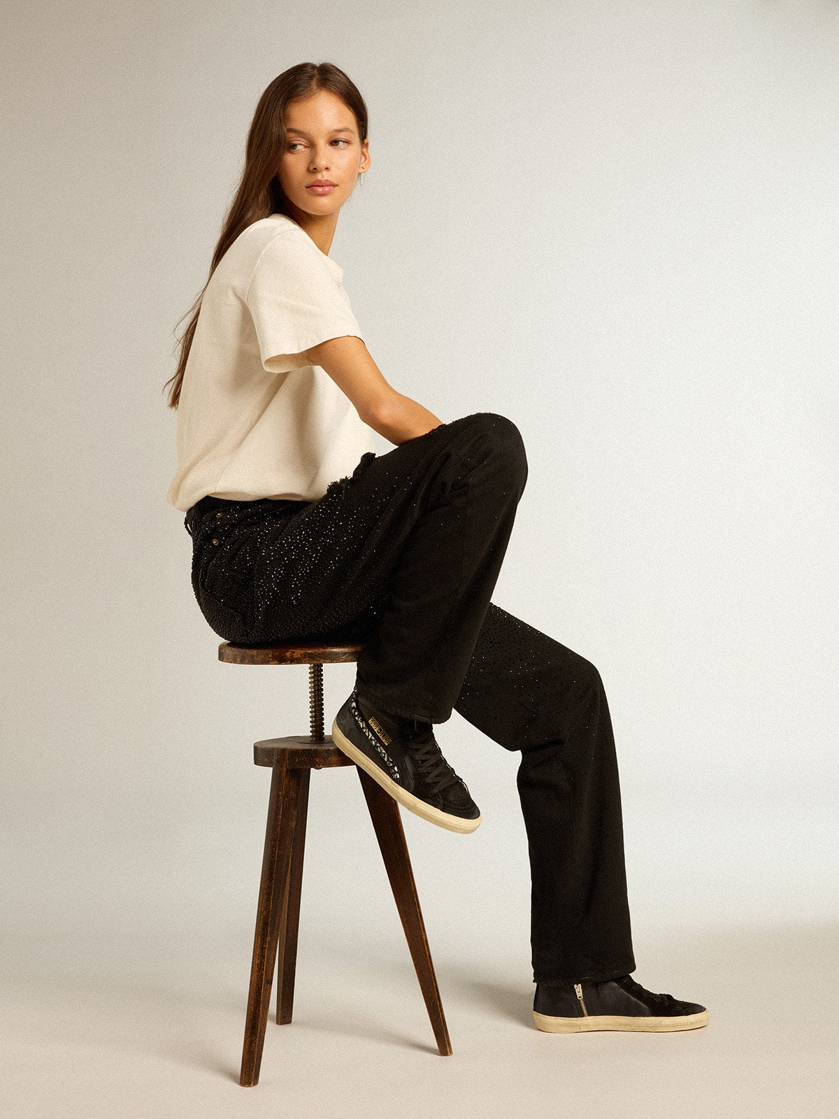 Golden Goose Slide In Leather With Black Star And Swarovski Crystal Flash