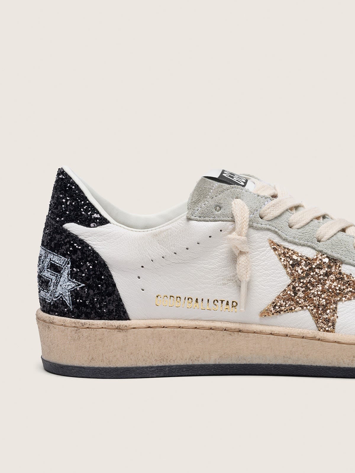 Golden Goose Women’s Ball Star In Nappa And Suede With Glitter Star And Black Heel Tab
