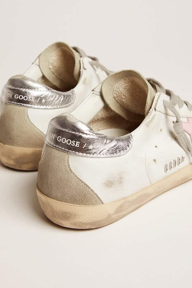 Golden Goose Women’s Leather Super-Star With Pink Star And Silver Heel Tab