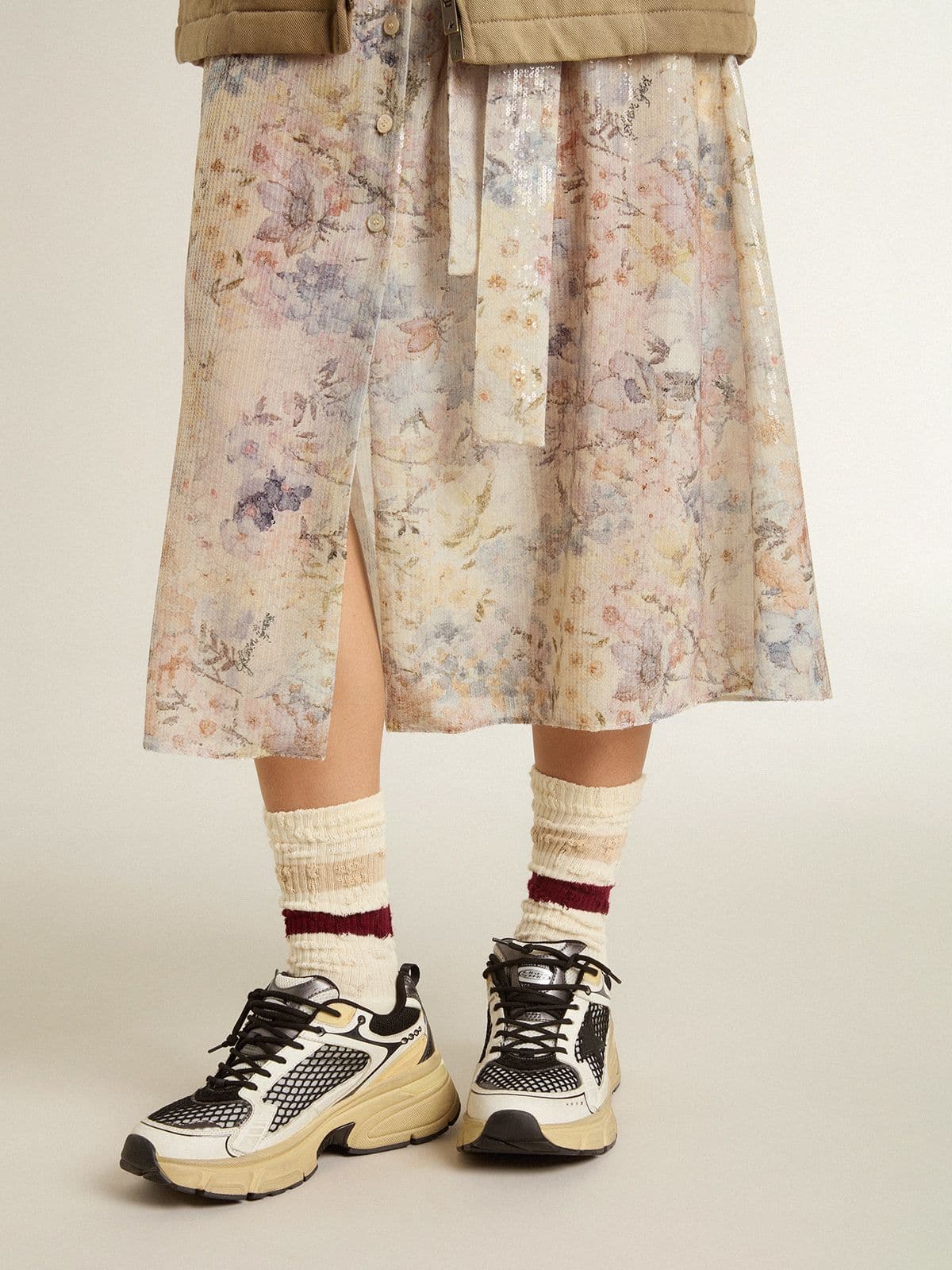 GWF00724.F007334.10546 kodlu bu spor ayakkabı, beyaz deri ve siyah file kombinasyonuyla modern ve sofistike bir görünüm sunar. El yapımı üretimi ve vintage finisajı ile İtalya'da üretilmiştir.