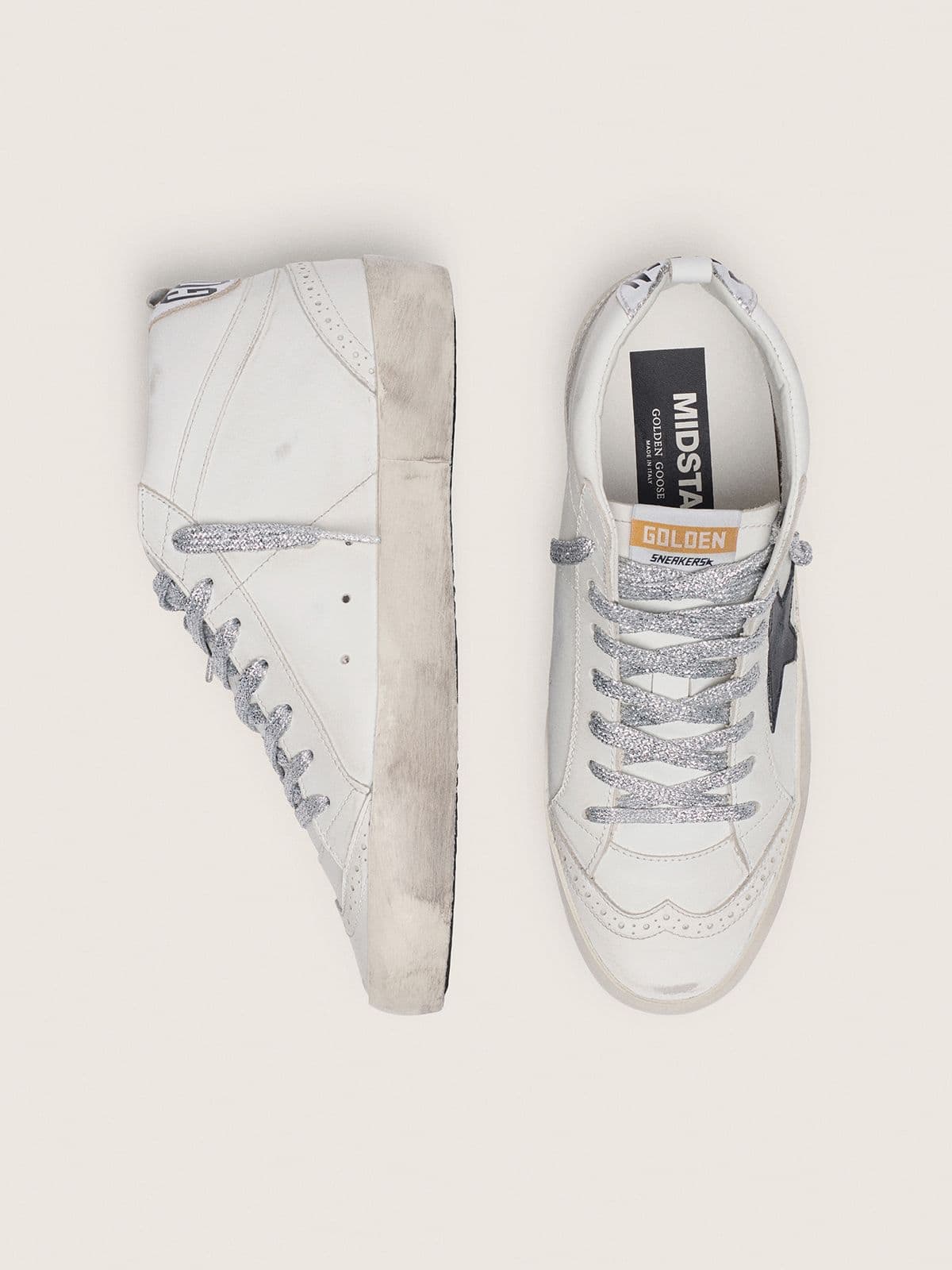 Golden Goose Women’s Mid Star With Laminated Heel Tab And Glitter Laces