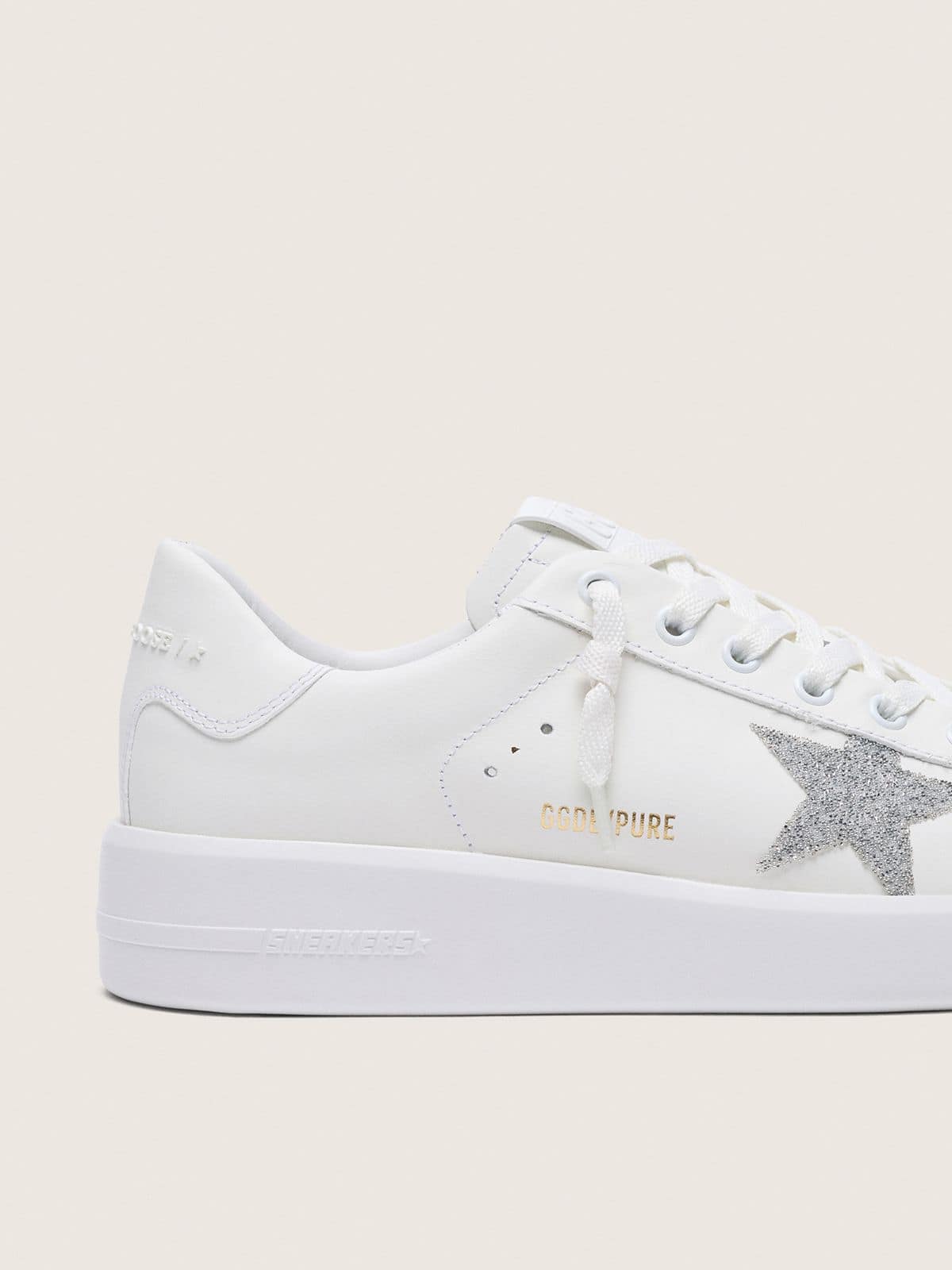Golden Goose Women’s Purestar In White Leather With Silver Swarovski Crystal Star