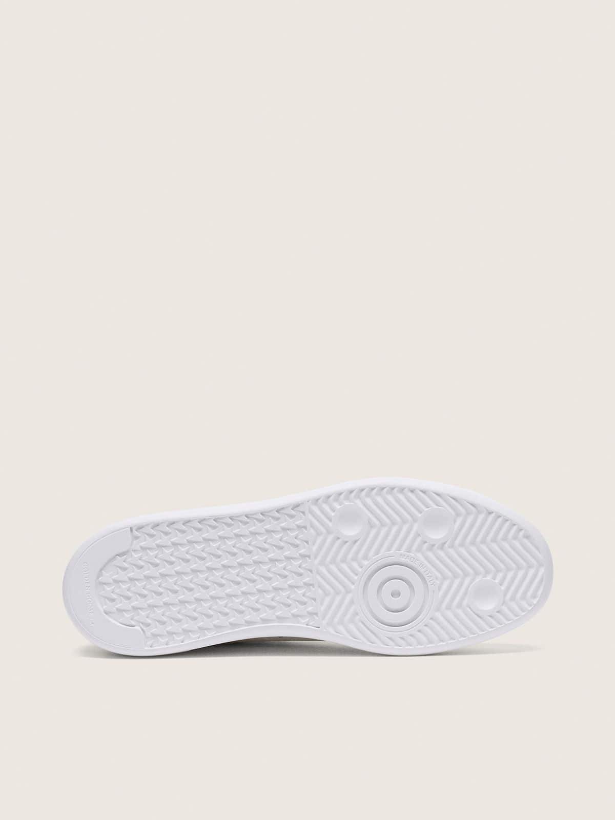 Beyaz deri üst yüzey, dikkatlice işlenmiş dikiş detayları ve gümüş Swarovski kristalli yıldız aplikasyonu ile estetik bir denge kurar. İç astarda dana derisi ve pamuk karışımı kullanılarak hem yumuşak bir his hem de nefes alabilirlik sağlanmıştır. Beyaz deri topuk kısmı ve beyaz bağcıklar tasarıma bütünlük katar.