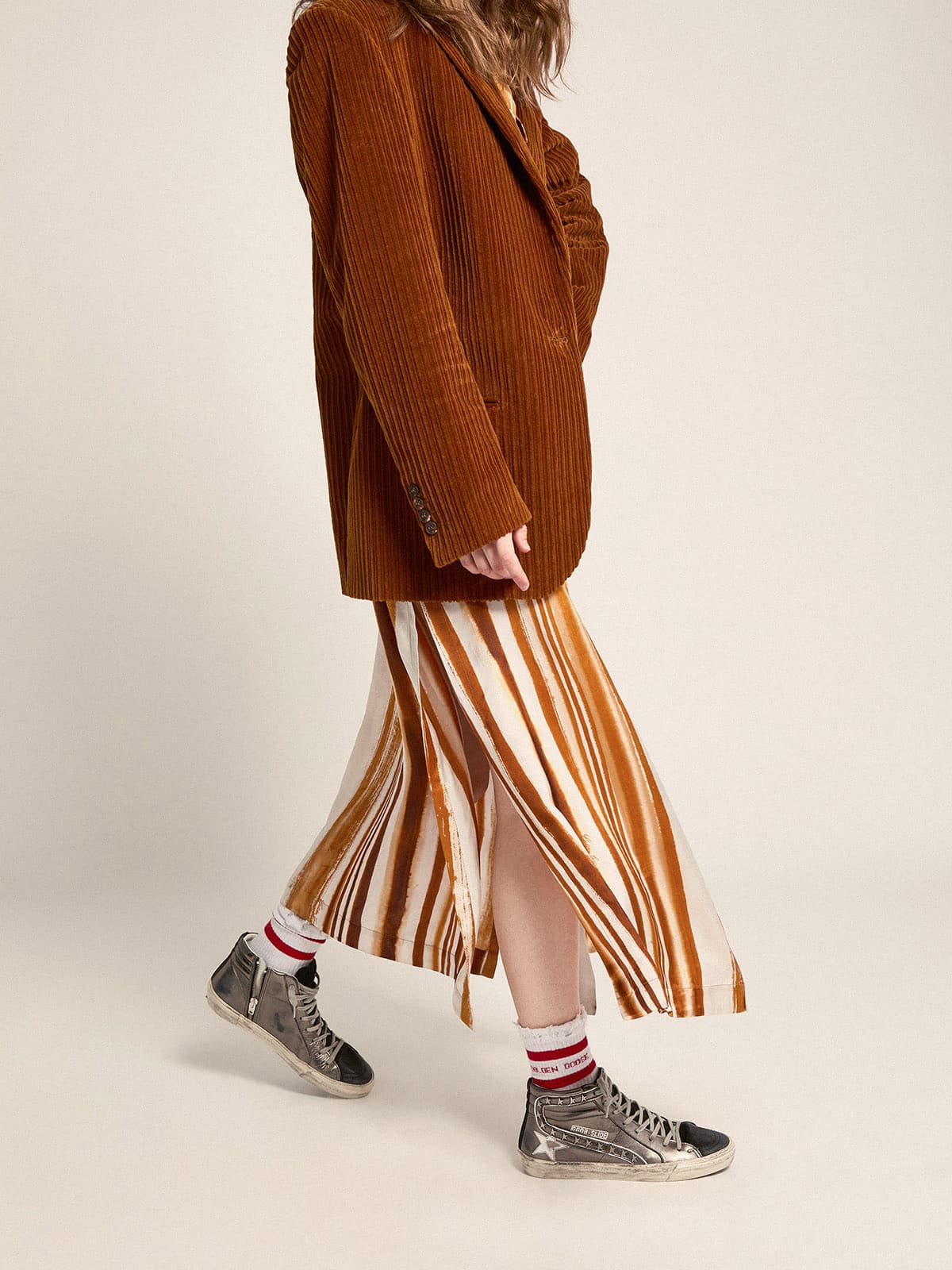 Golden Goose Women’s Slide With Silver Laminated Leather Upper And Studs