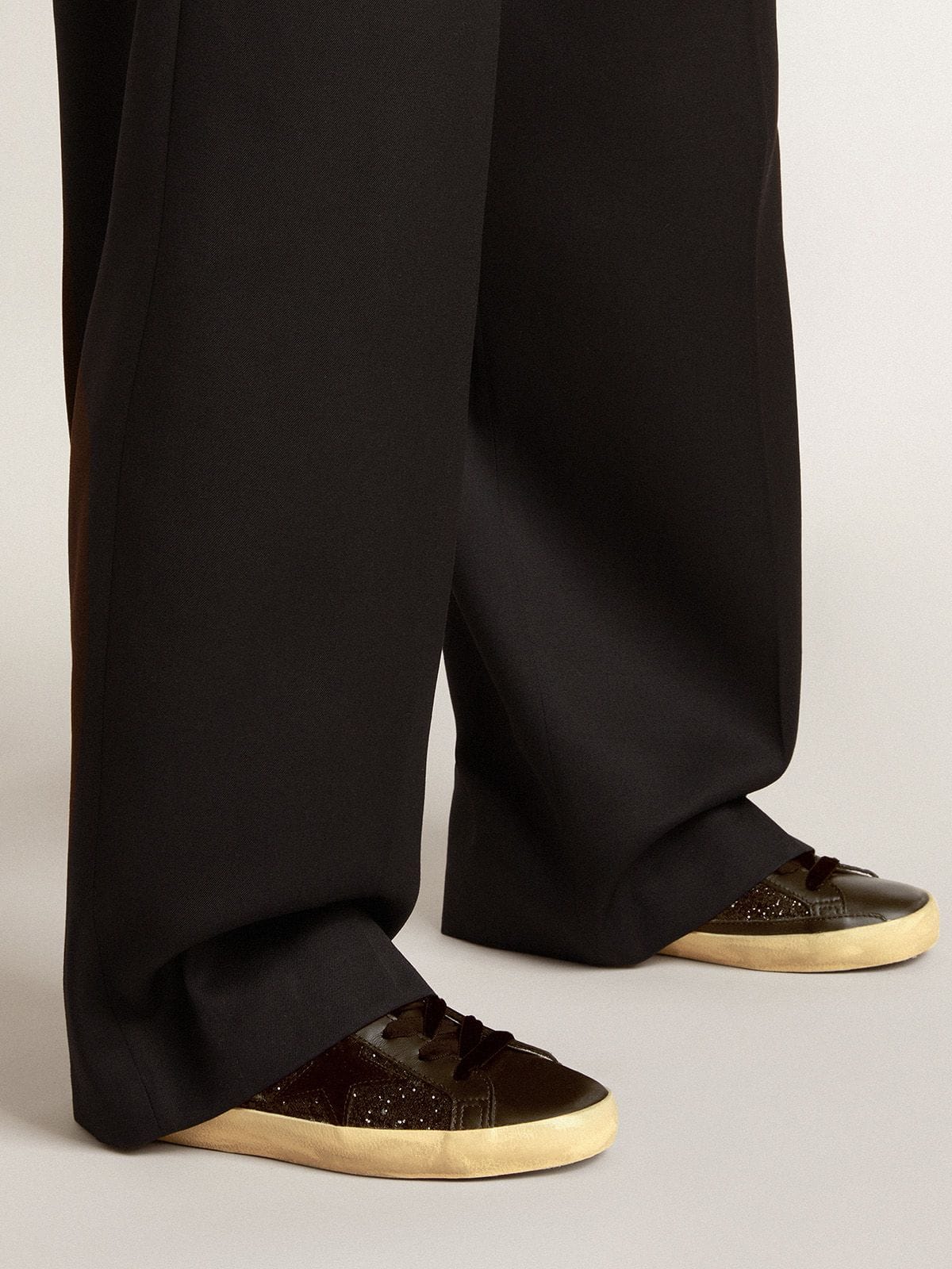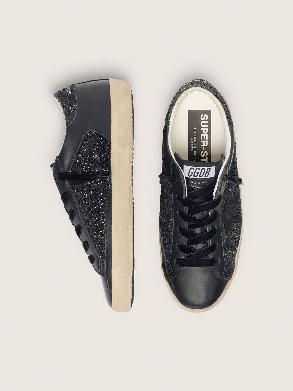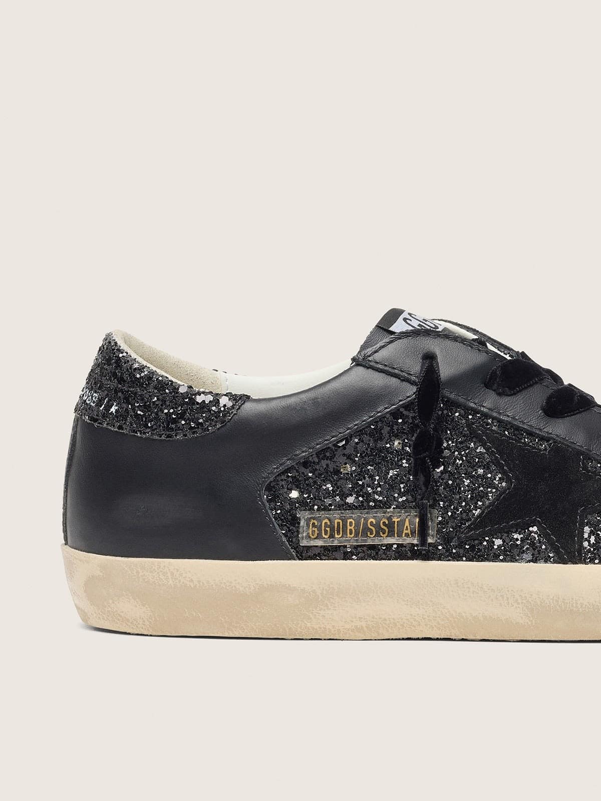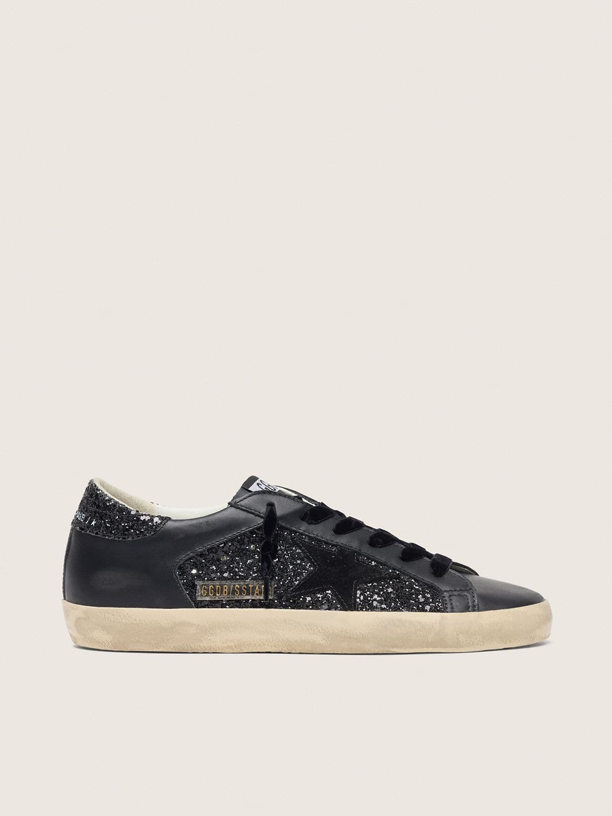 Golden Goose Women’s Super-Star In Black Glitter With Black Suede Star And Leather Inserts