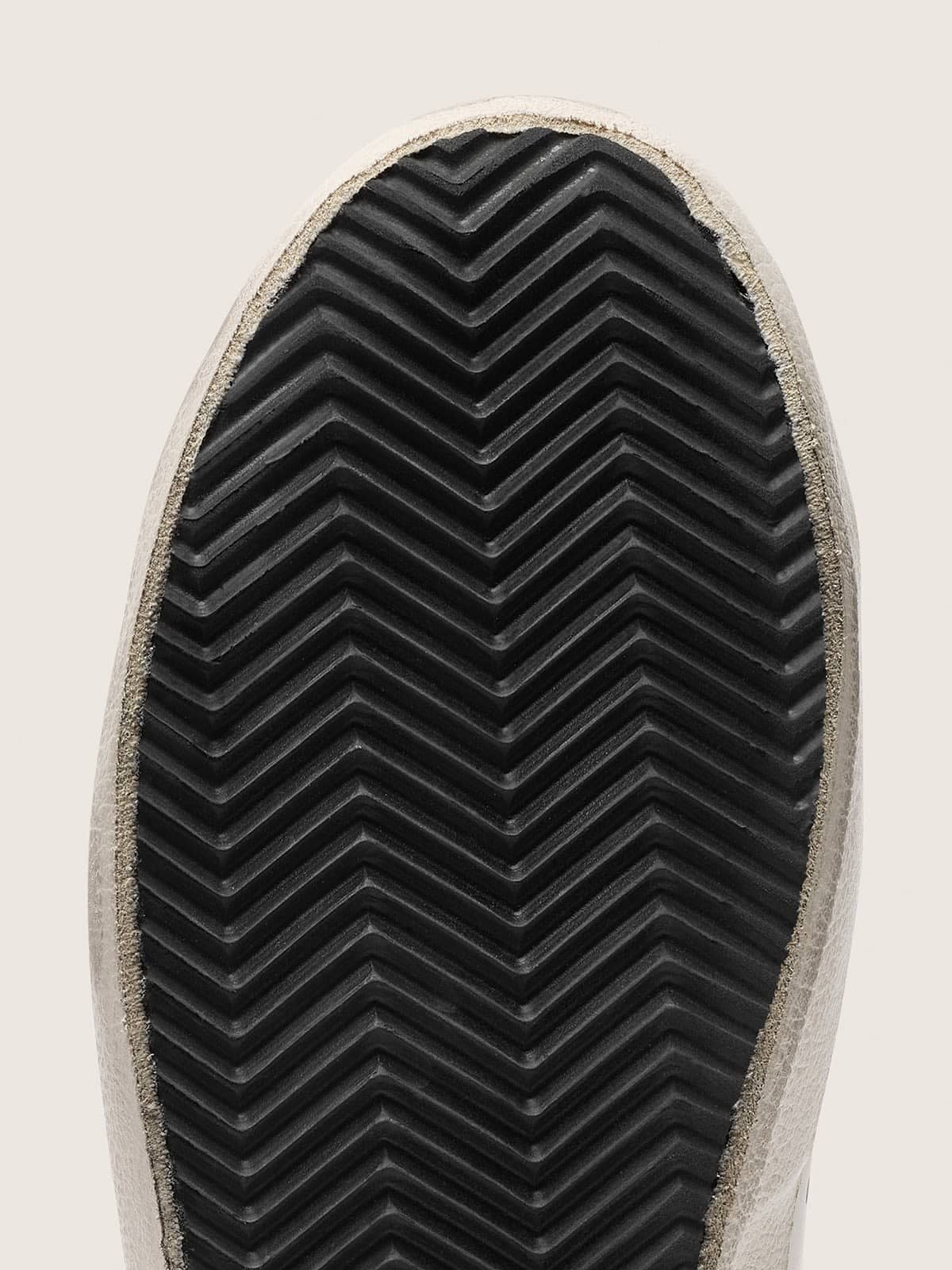 - Üst yüzeyde beyaz nappa deri kullanımı ve kaliteli deri-tekstil astar, malzeme kalitesini vurgular.