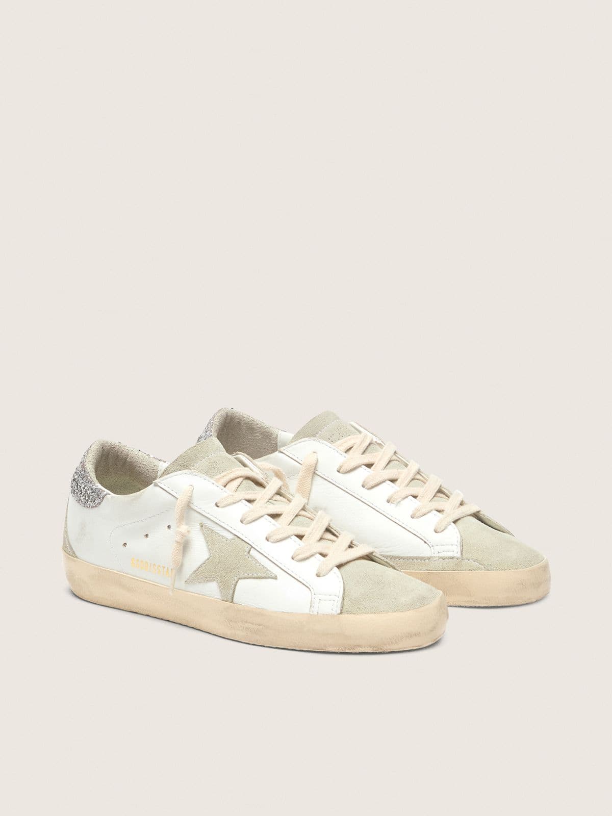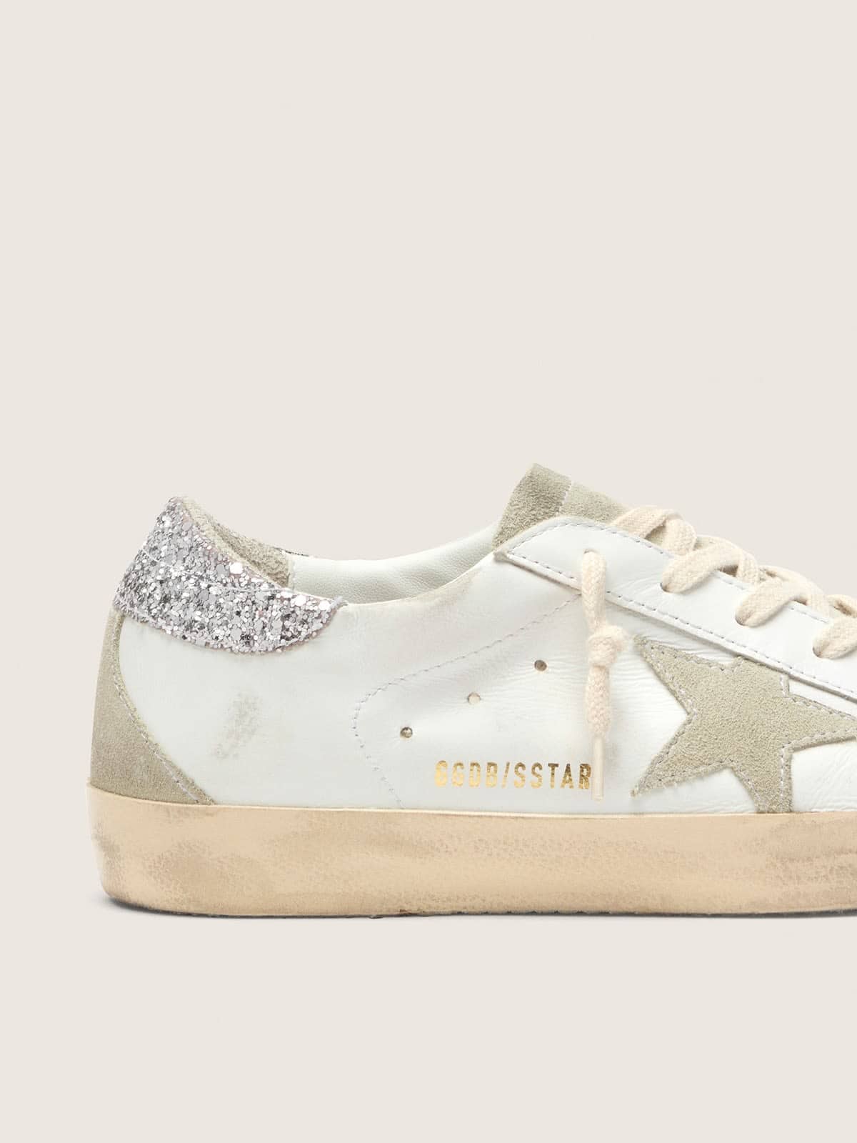 Golden Goose Women’s Super-Star With Gray Star And Silver Glitter Heel Tab