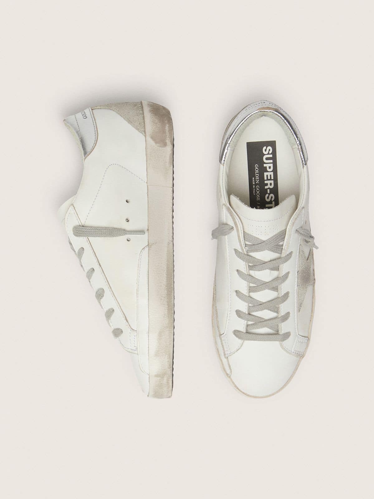 Golden Goose Women’s Super-Star With Silver Heel Tab And Metal Stud Lettering