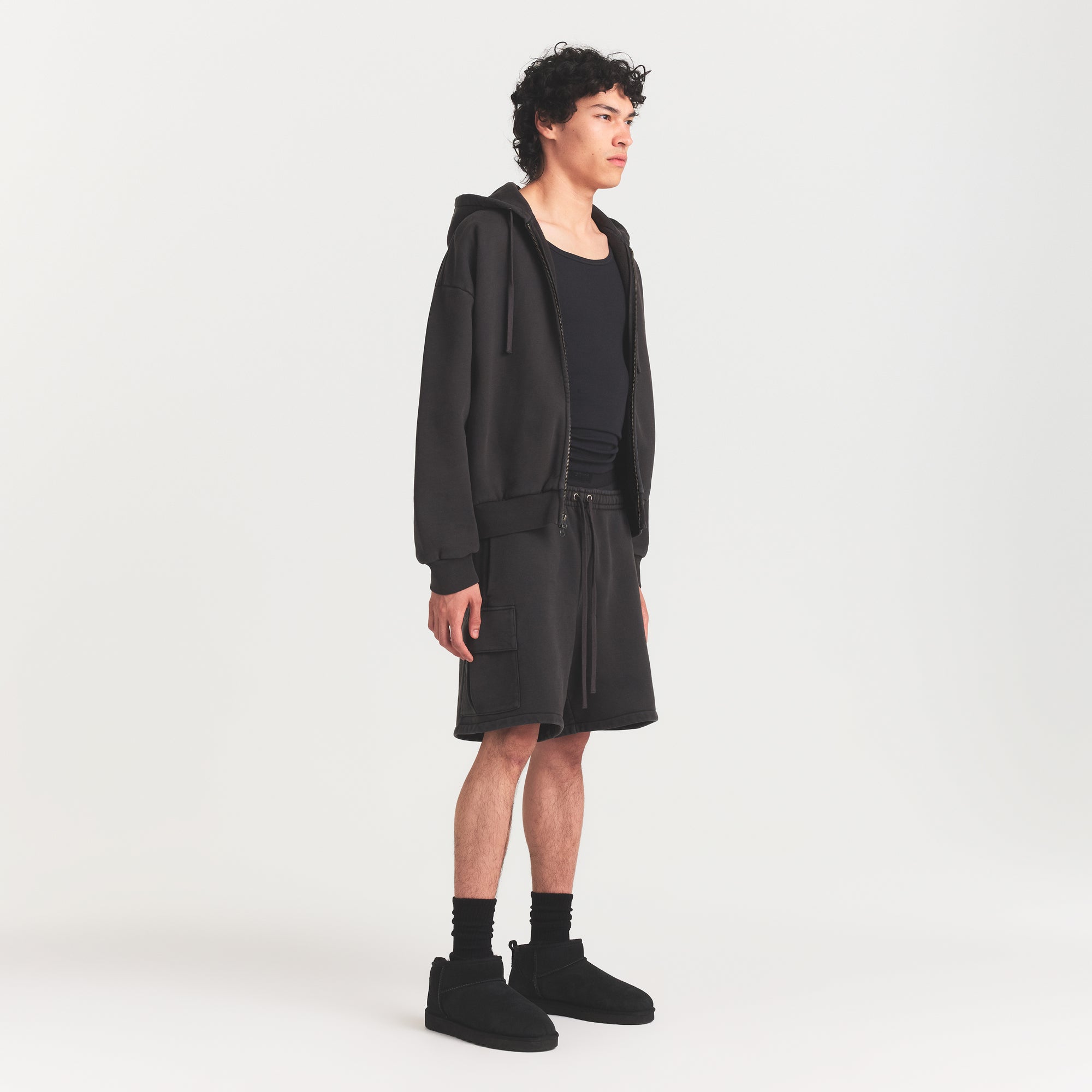 SKIMS HEAVYWEIGHT FLEECE MENS CARGO SHORT | WASHED ONYX