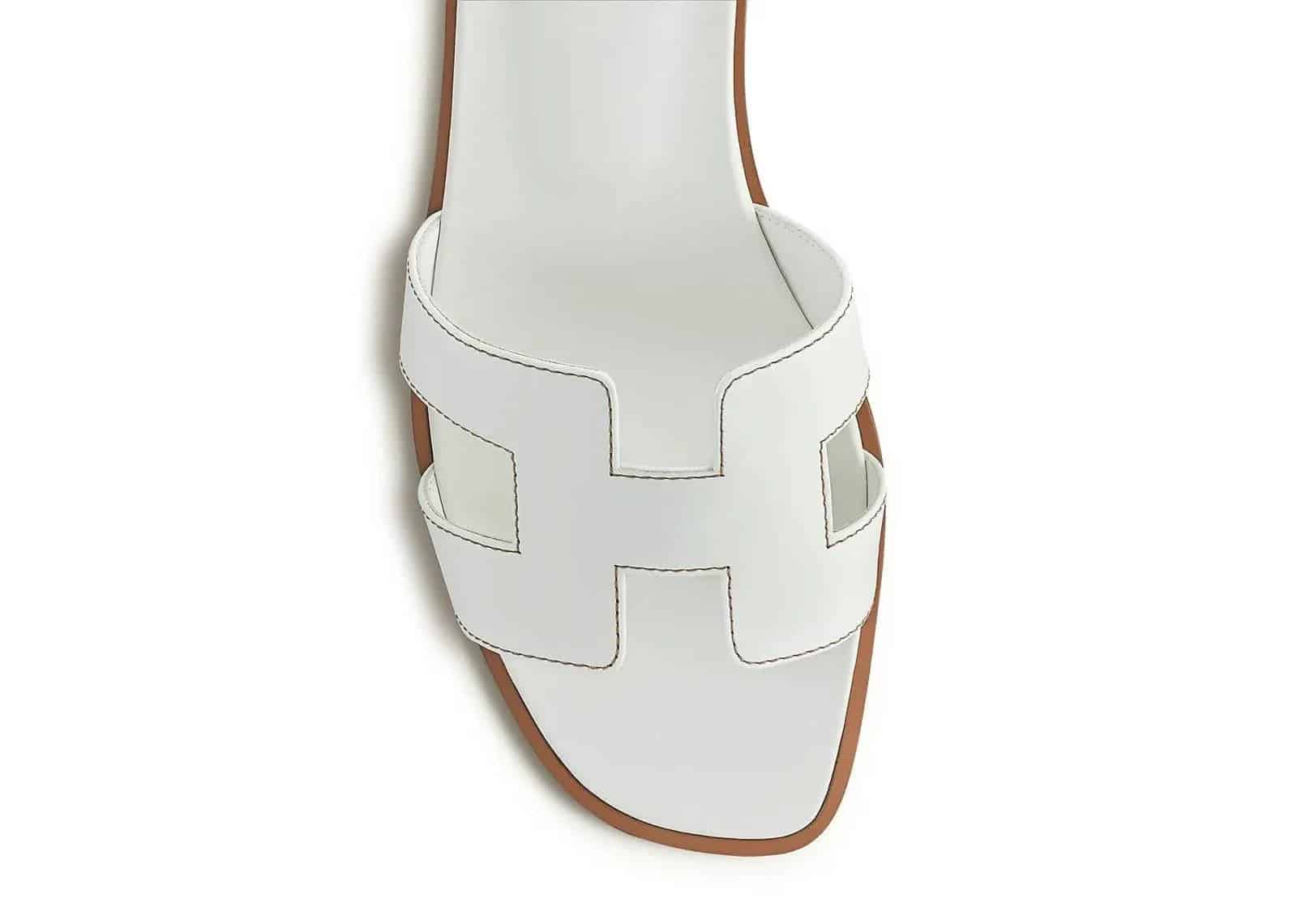 Hermes Oran Sandal Blanc Box Calfskin Leather