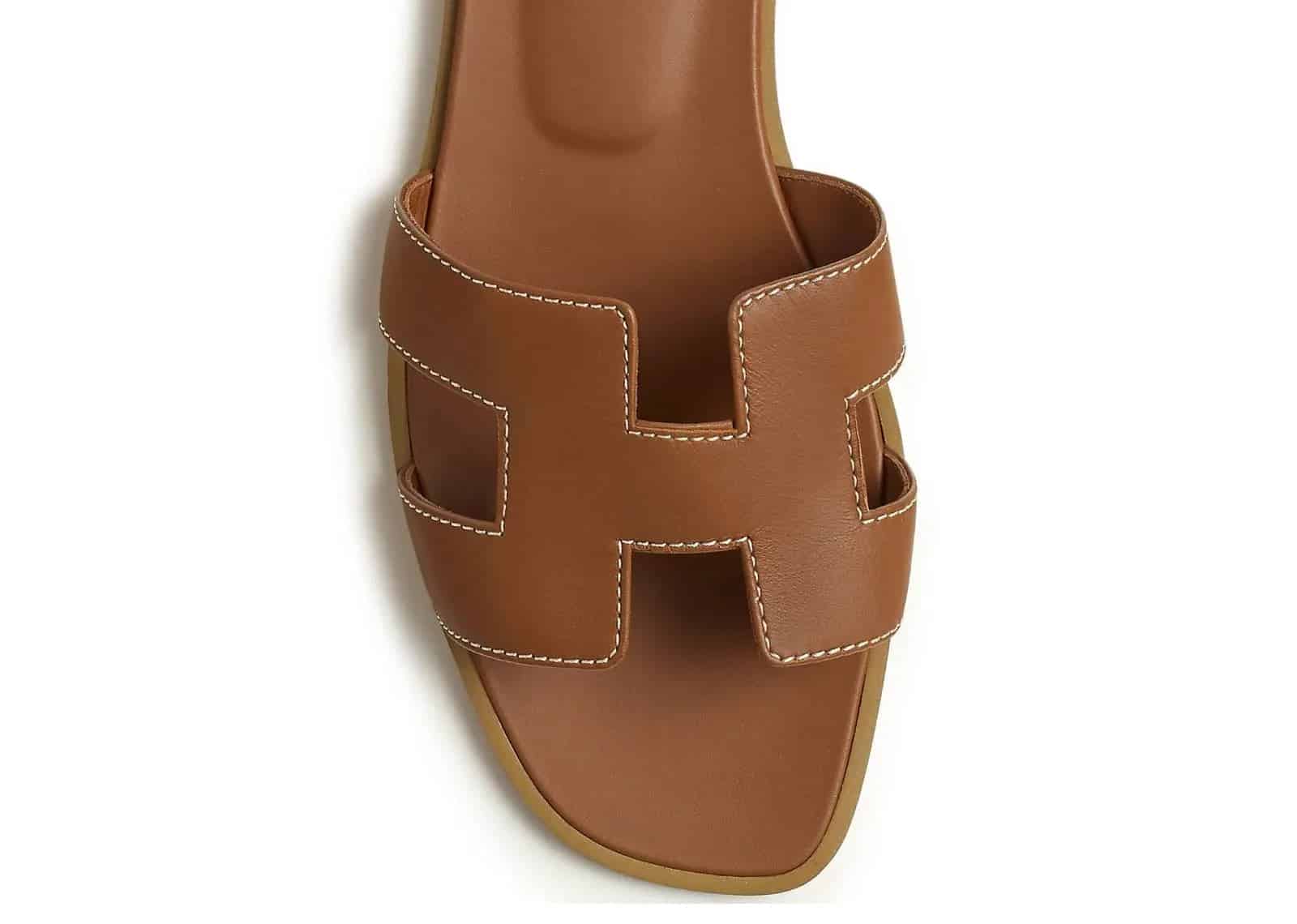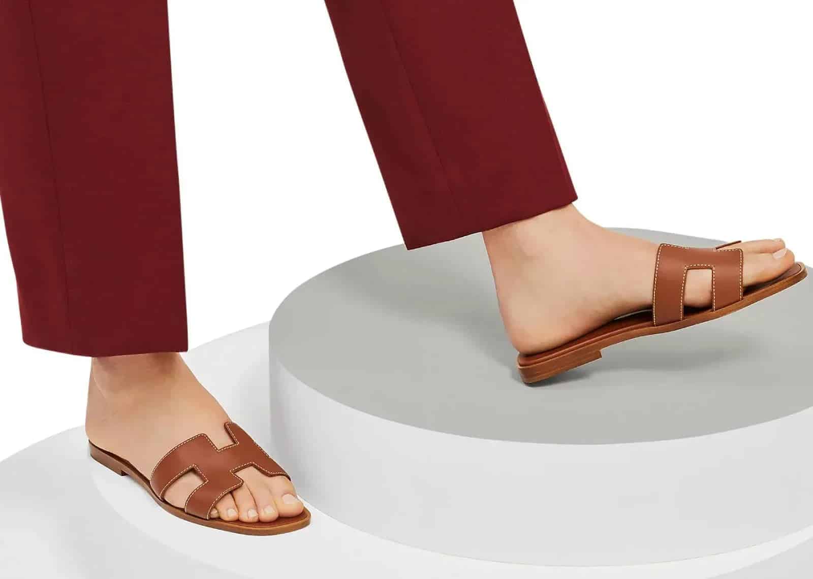 1997 yılında Pierre Hardy tarafından tasarlanan Hermès Oran Sandal, markanın simgesi hâline gelen "H" kesimiyle dikkat çeker. Gold Box dana derisi ve siyah deri astarıyla sade bir şıklık sunarken, estetik dengeyi de mükemmel şekilde sağlar.