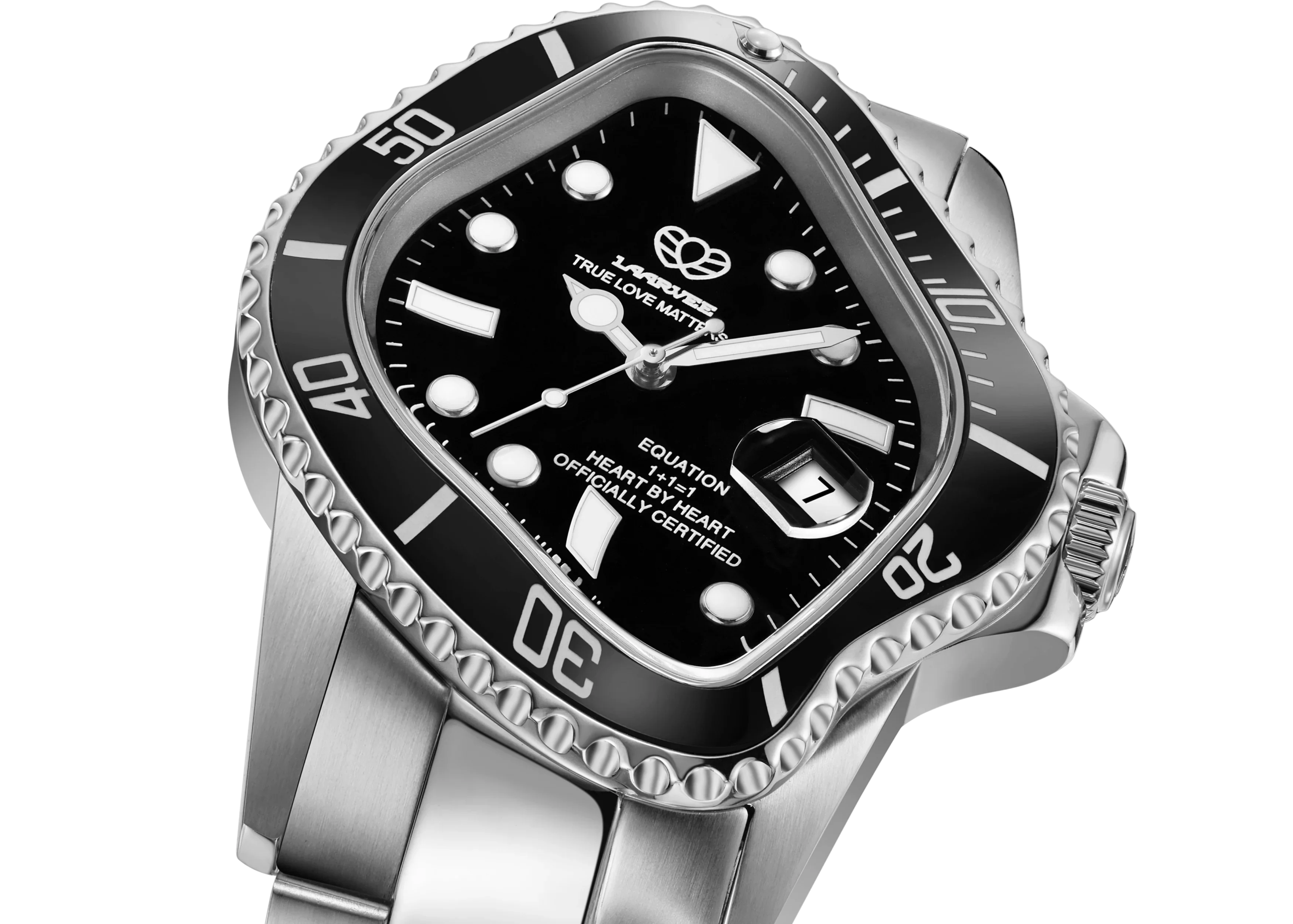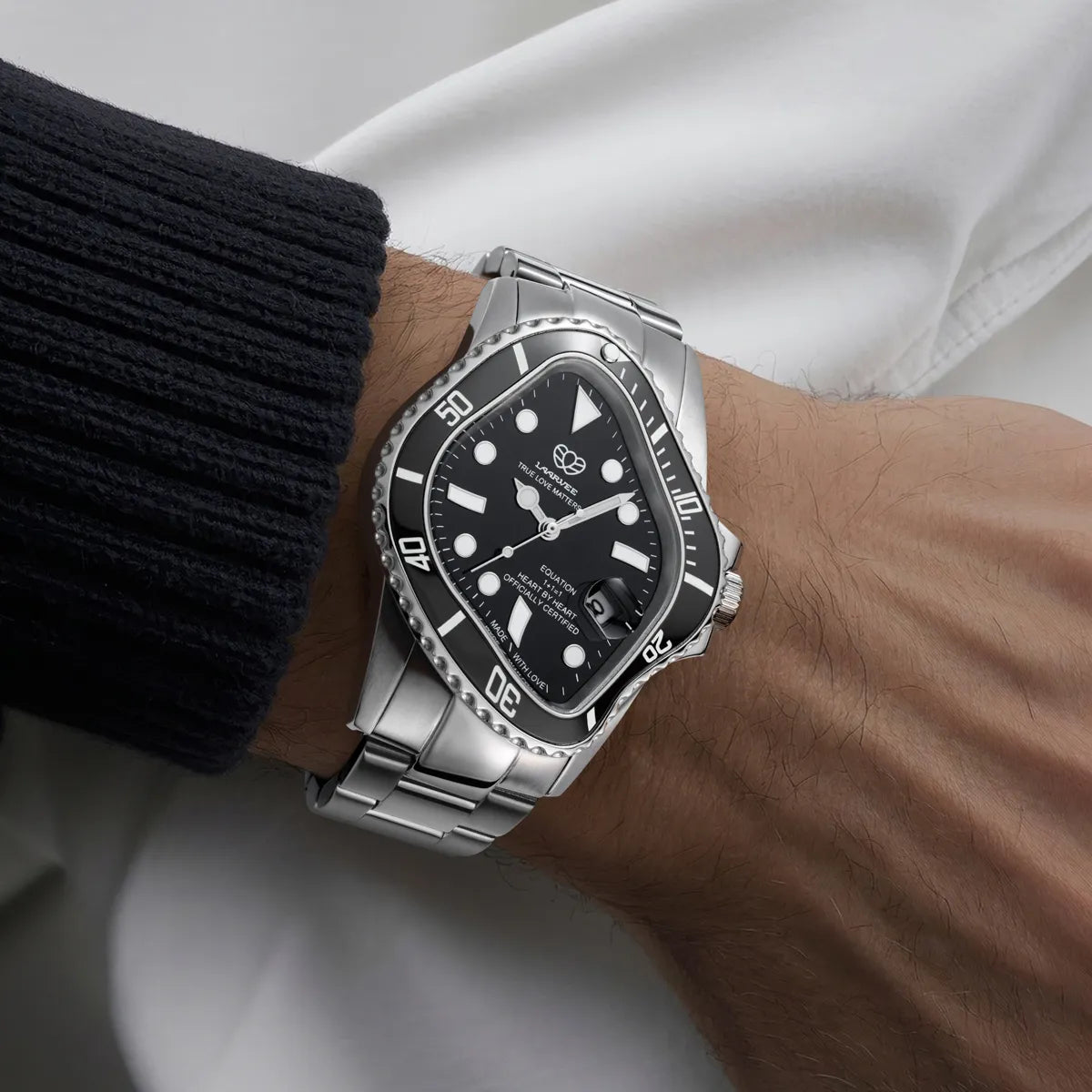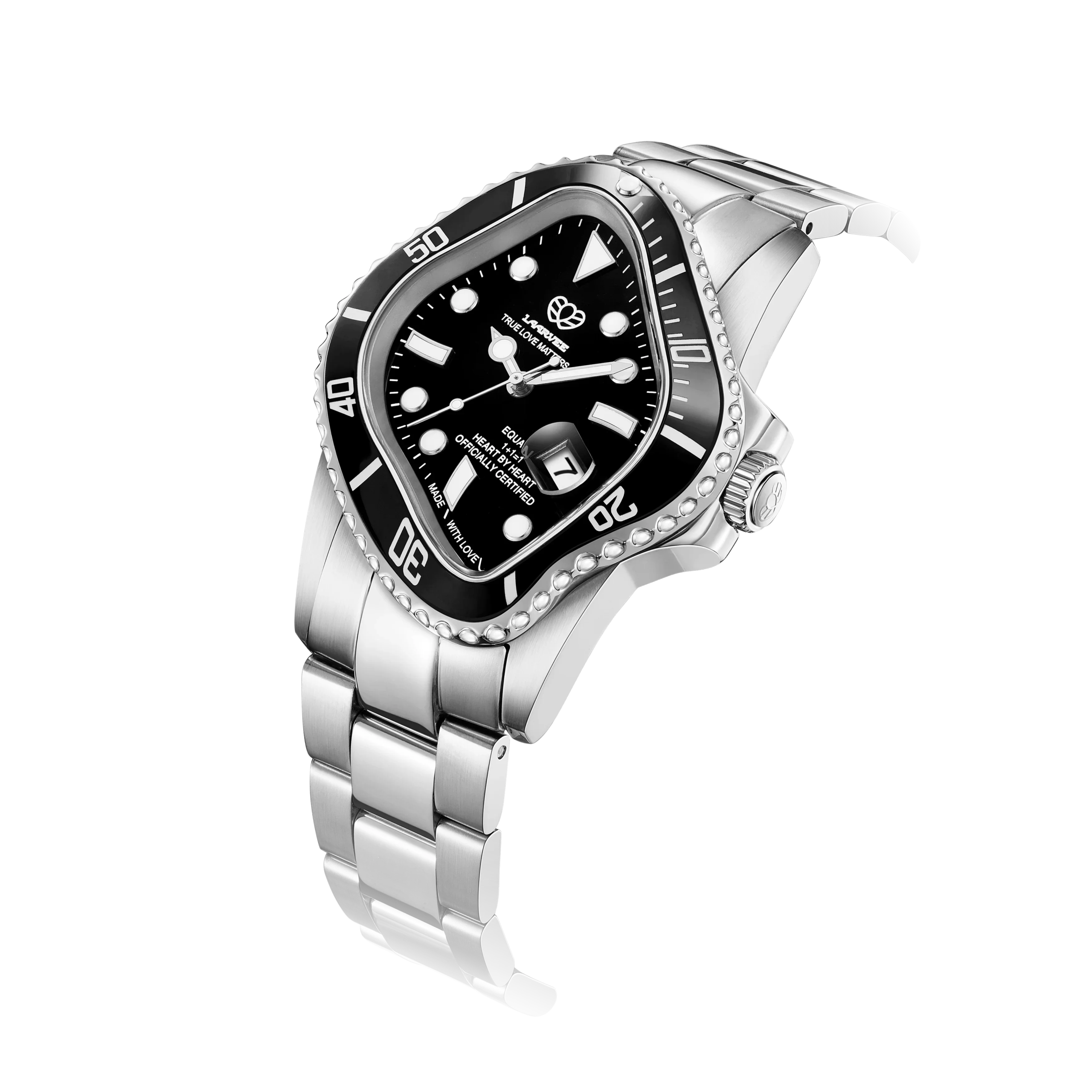 - Çizilmelere karşı dayanıklı siyah seramik bezel ile çerçevelenmiş paslanmaz çelik kasa.
