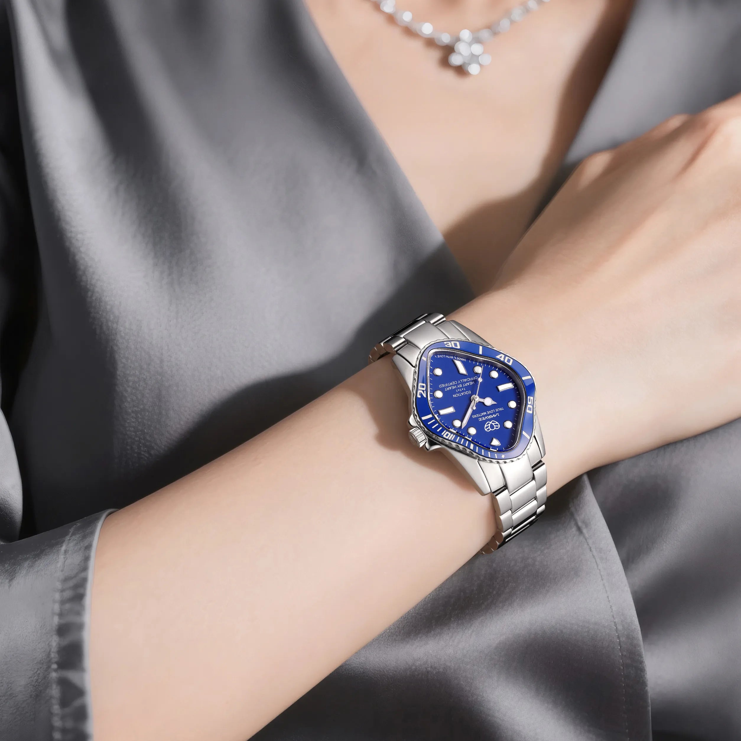 Bu şık saat, derin deniz mavisi kadranı ve uyumlu seramik bezel ile dikkat çekici bir estetik sunmaktadır. Polished indeksler ve luminescent kollar, bu benzersiz kadranı günün her saati net bir şekilde okumayı sağlar.