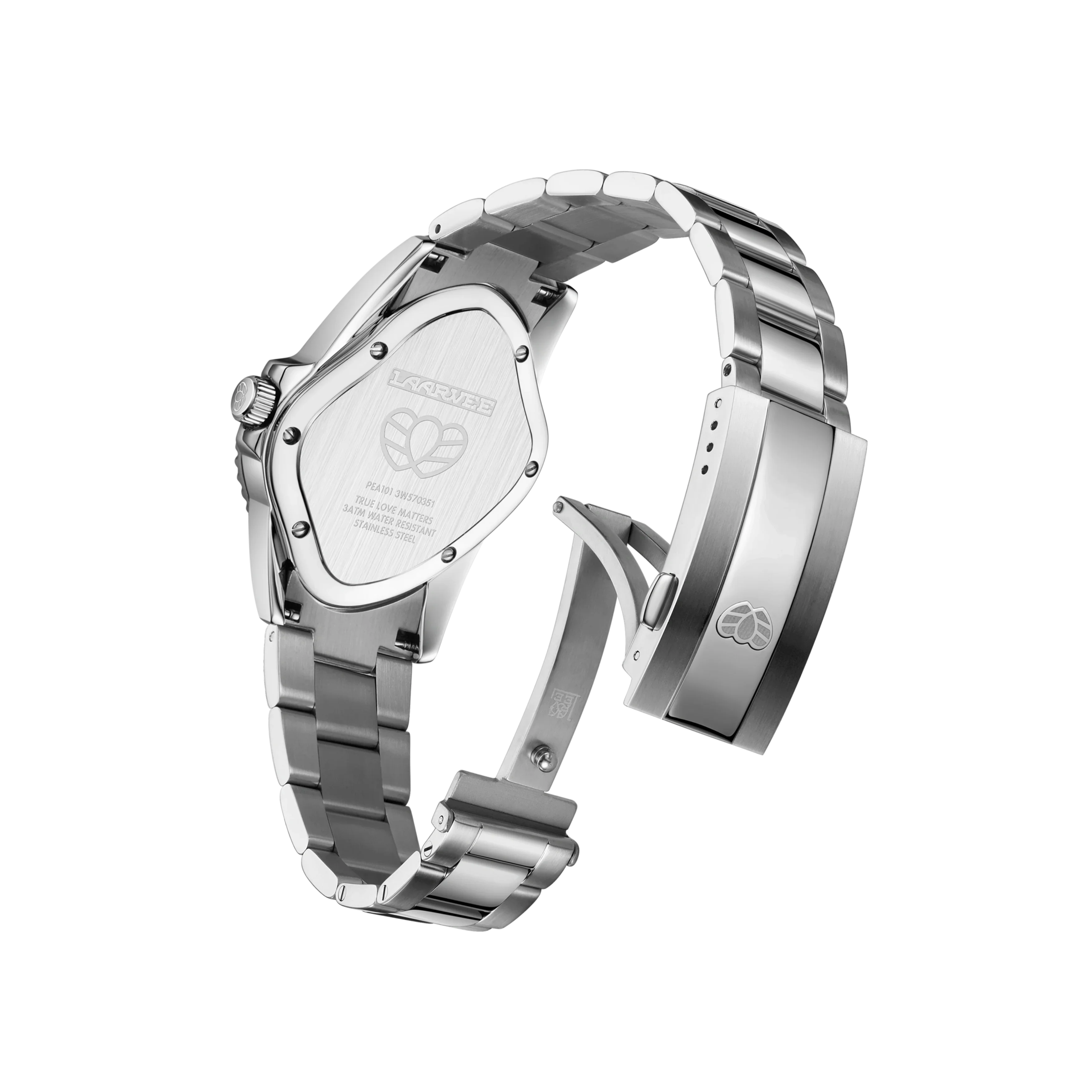 - Paslanmaz çelik kasa ve seramik bezel ile yüksek kaliteli malzemeler kullanılmıştır.
