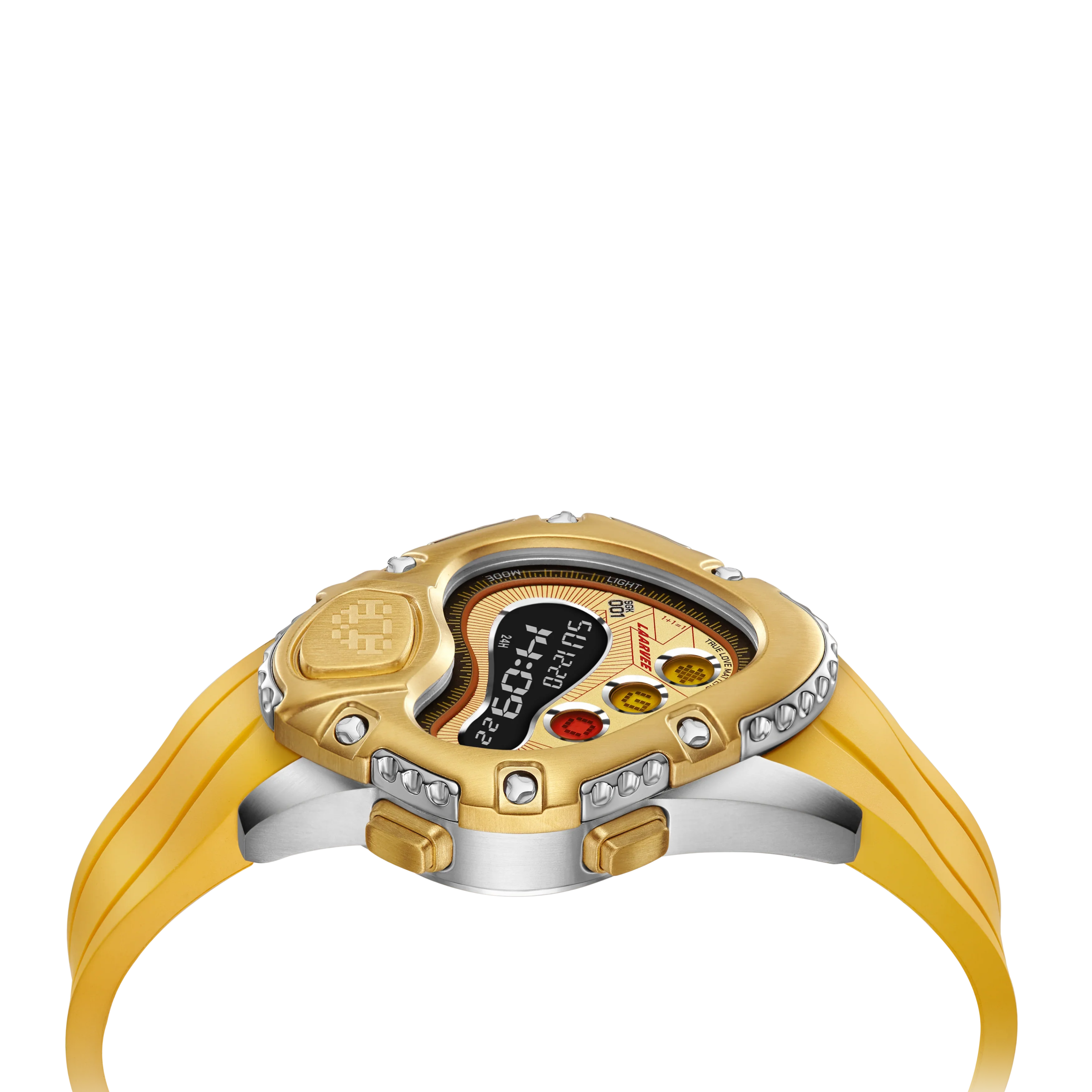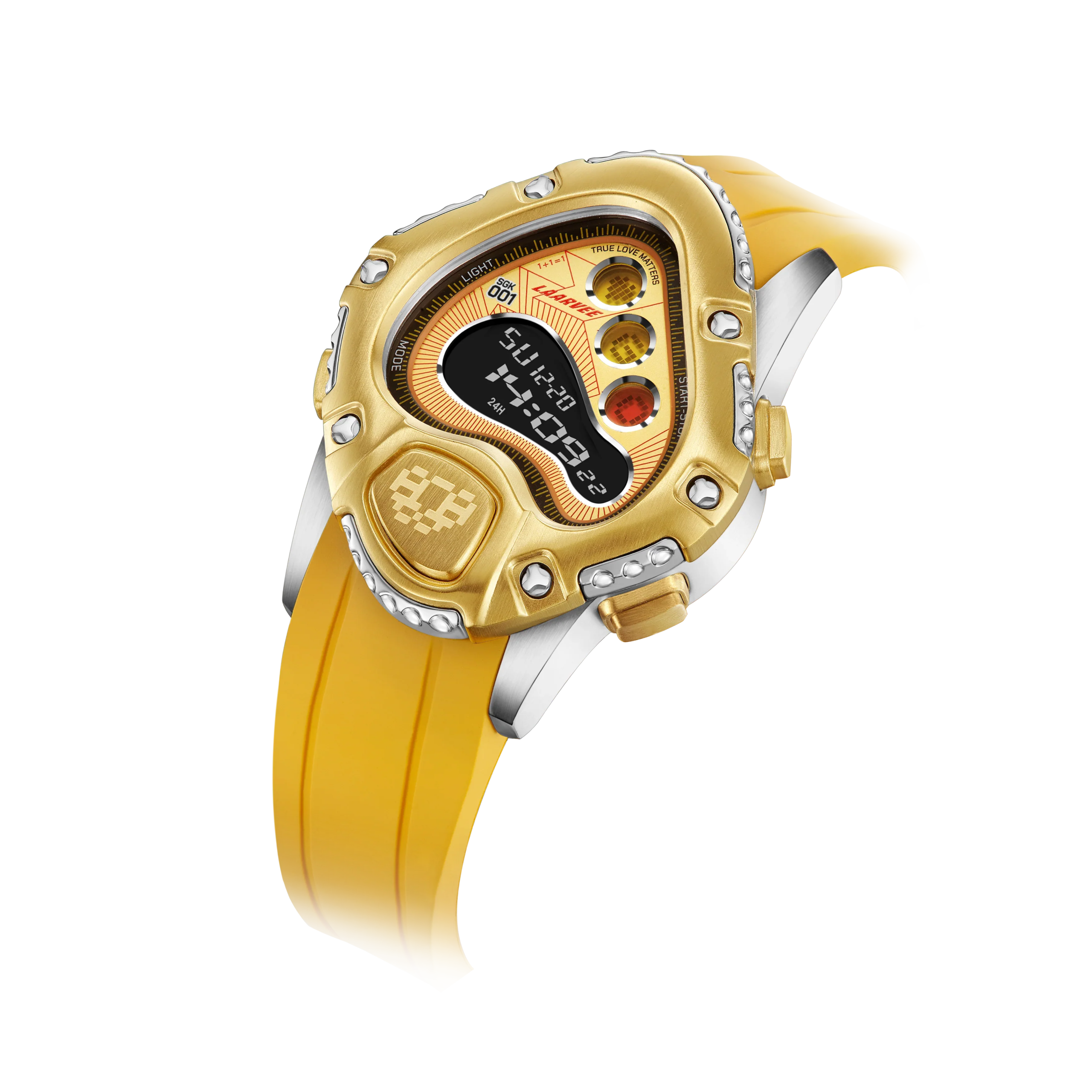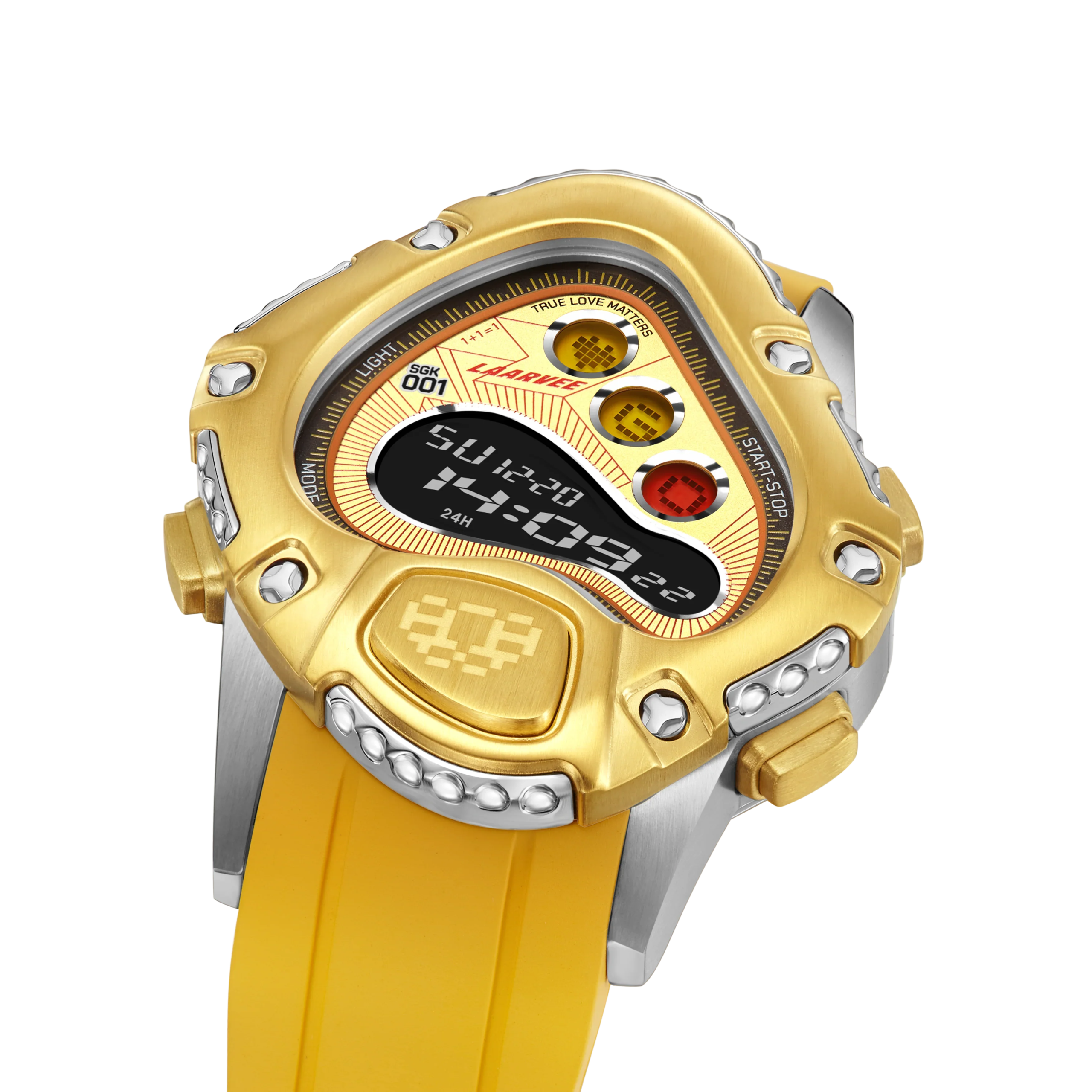 Signature Digital Sculpture, SGK001R-SSBRGYLW, dijital hassasiyeti ve heykelsi sanatı canlı sarı ve altın tonlarıyla birleştiriyor. Bu özel tasarım saat, modern estetiği ile şıklığı bir araya getiriyor.