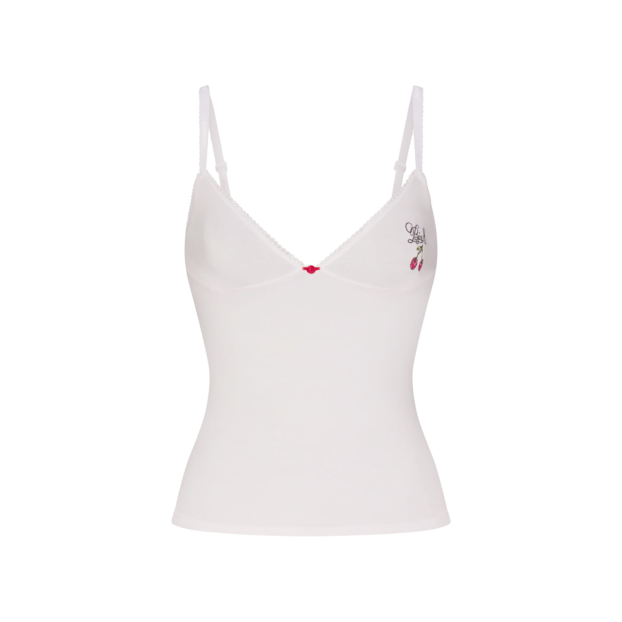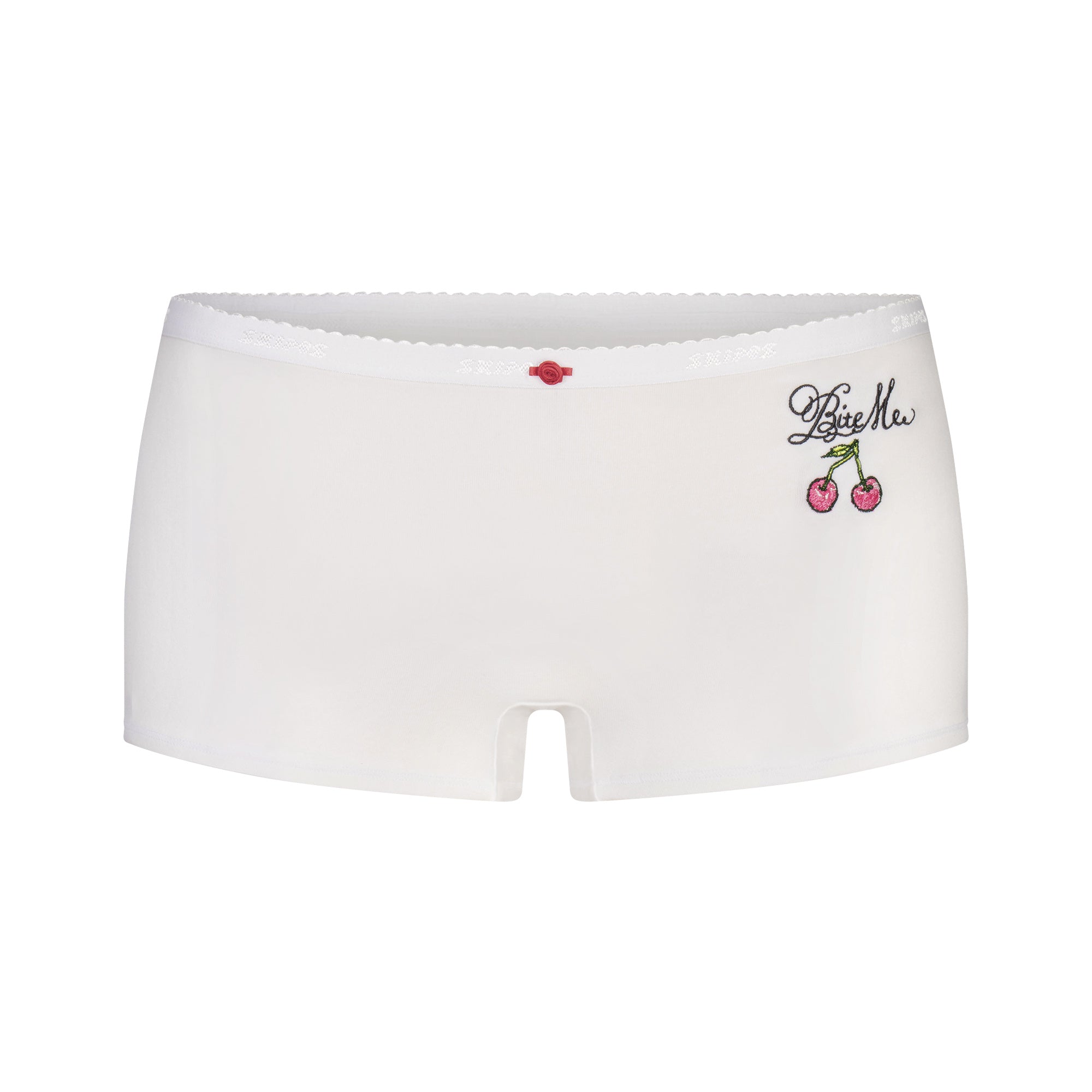 SKIMS LIGHTWEIGHT COTTON LOGO PICOT CAMI AND BOY SHORT SET | SNOW CONTRAST