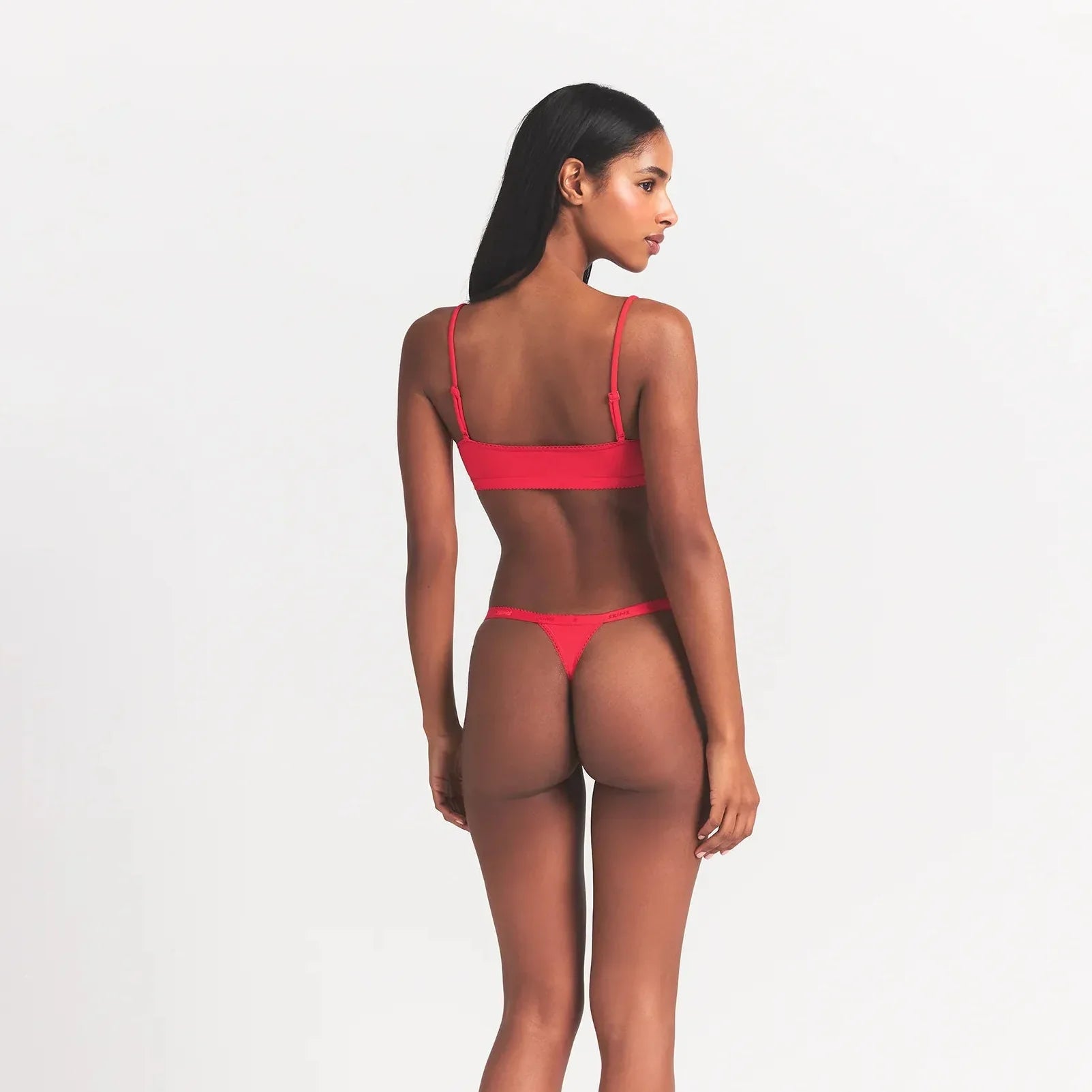 SKIMS LIGHTWEIGHT COTTON LOGO PICOT SCOOP BRALETTE | RUBY TONAL