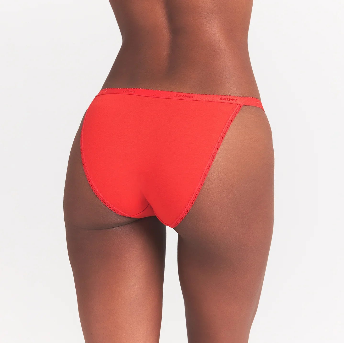 SKIMS LIGHTWEIGHT COTTON LOGO PICOT STRING BIKINI | RUBY TONAL