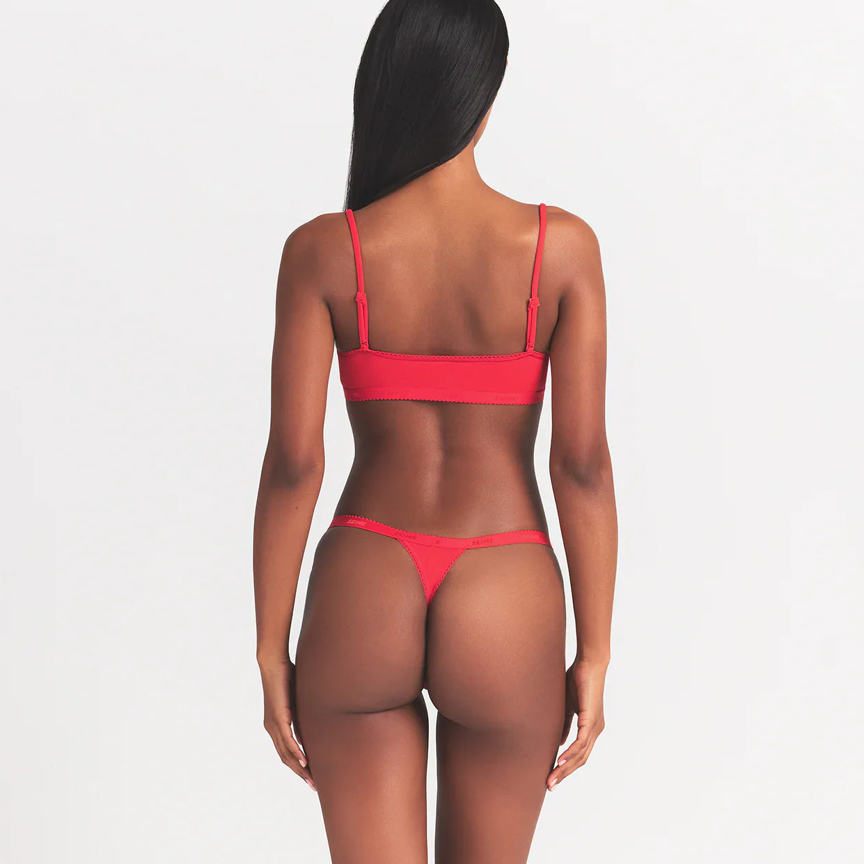 SKIMS LIGHTWEIGHT COTTON LOGO PICOT THONG | RUBY TONAL
