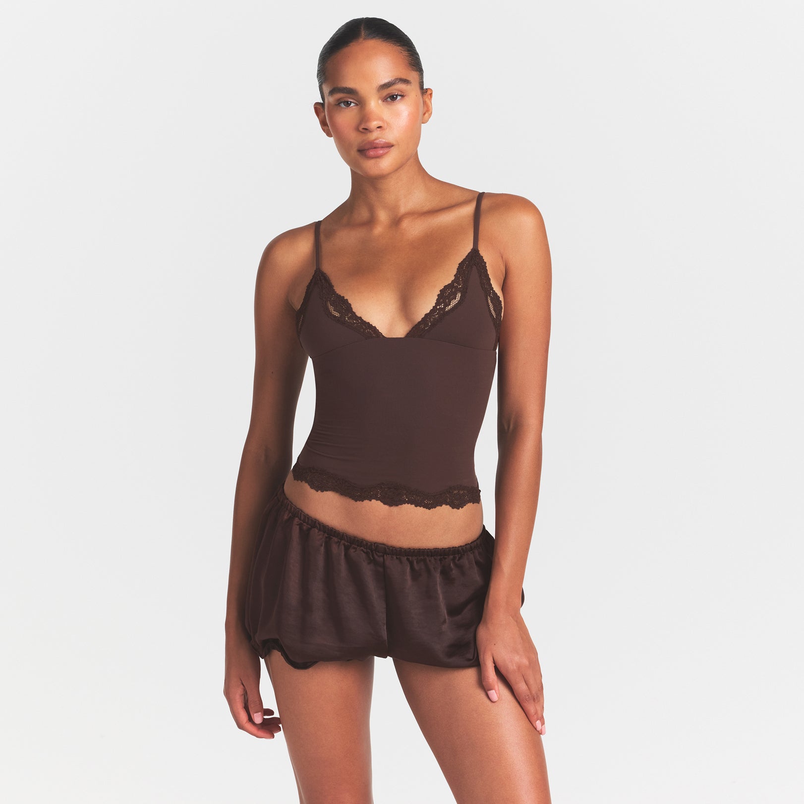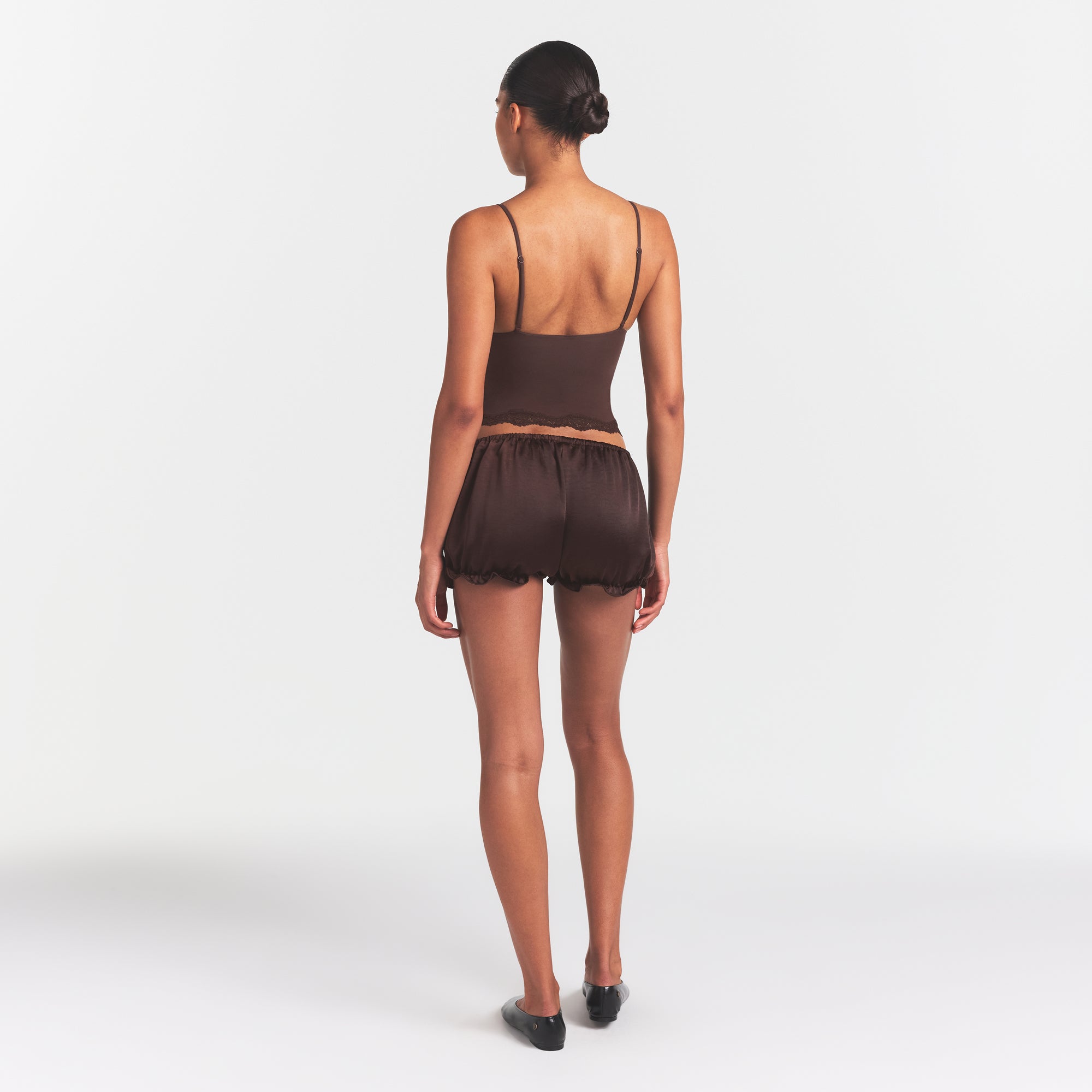 SKIMS LIGHTWEIGHT SATIN BLOOMER SHORT | ESPRESSO