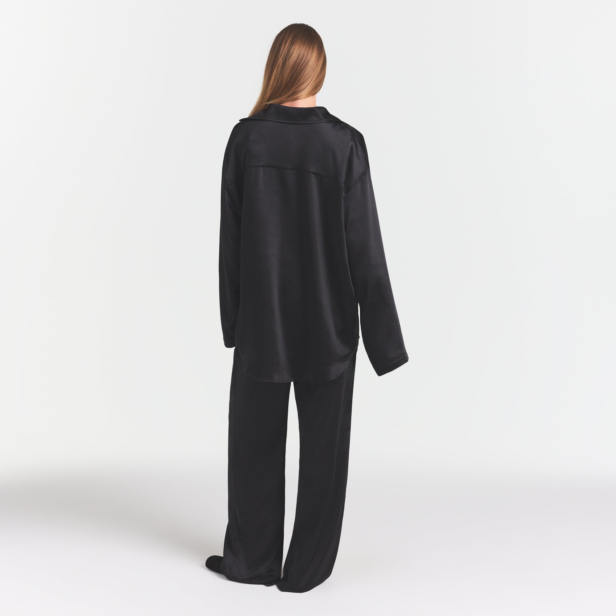 SKIMS LIGHTWEIGHT SATIN OVERBedenD SHIRT | OBSIDIAN