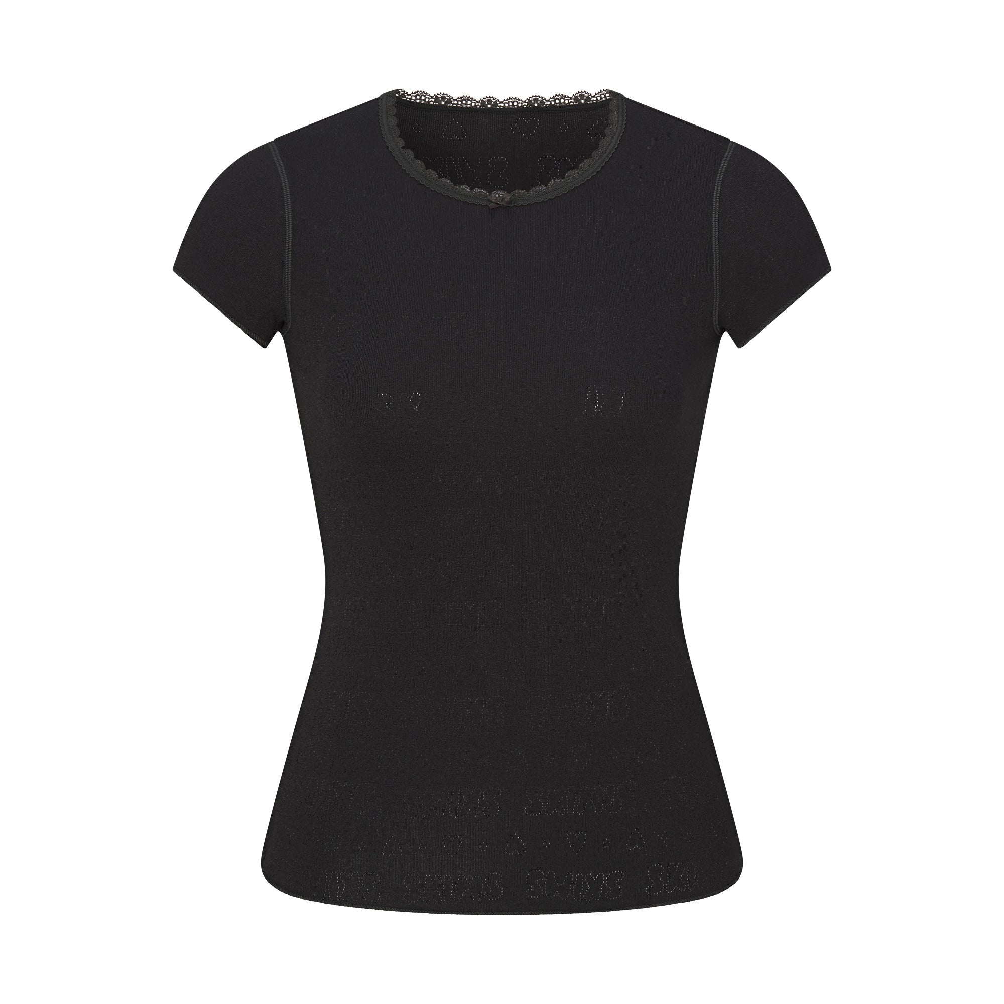 SKIMS LOGO POINTELLE BABY TEE AND MICRO SHORT SET | SOOT