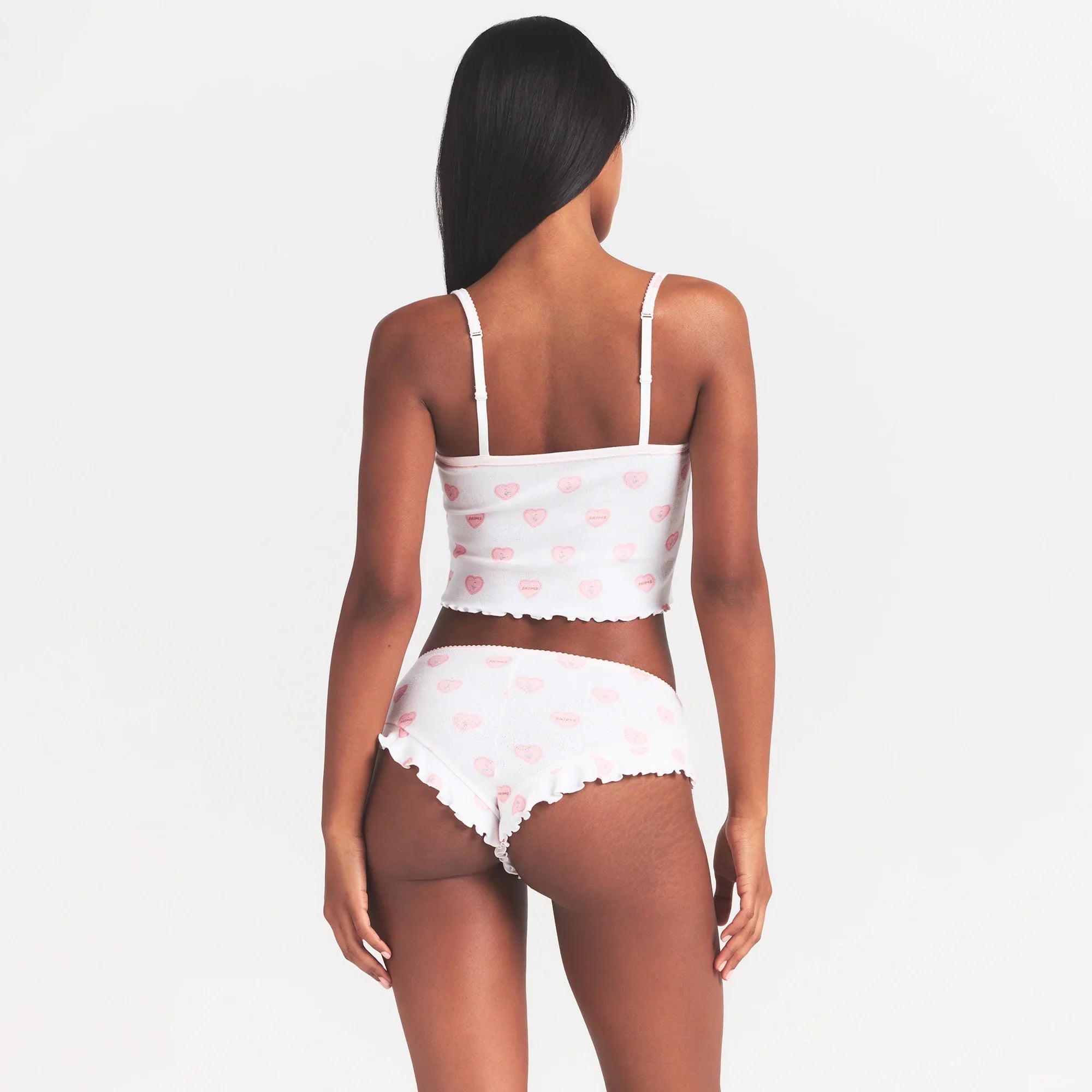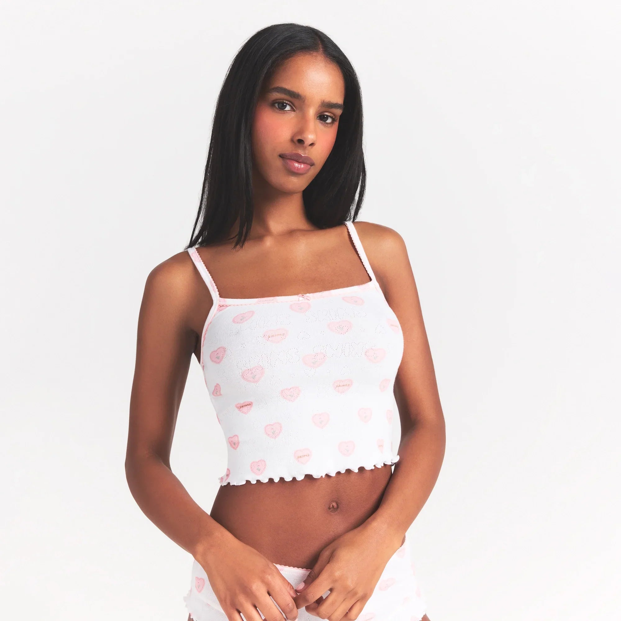 SKIMS LOGO POINTELLE CAMI SLEEP SET | SNOW LACE HEARTS