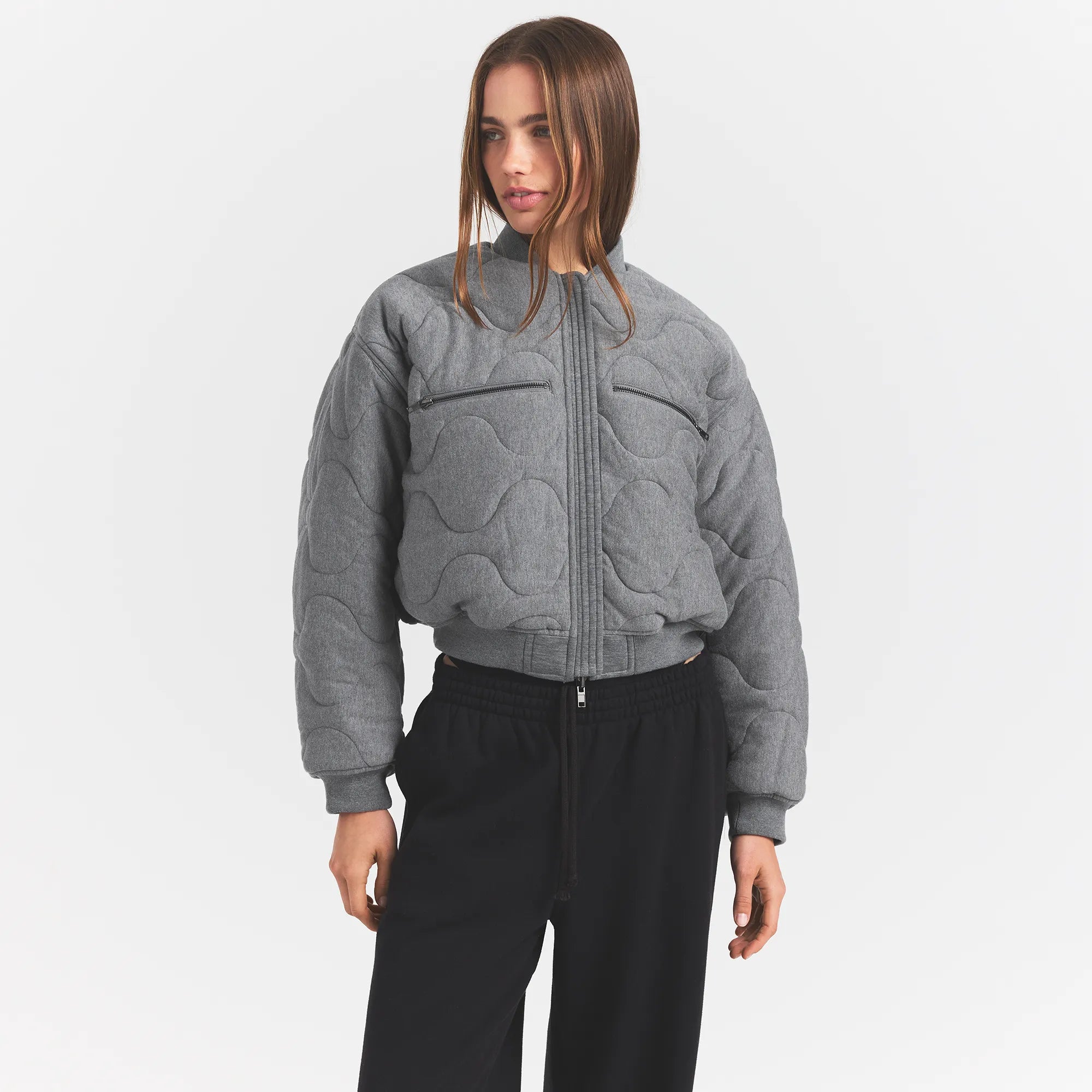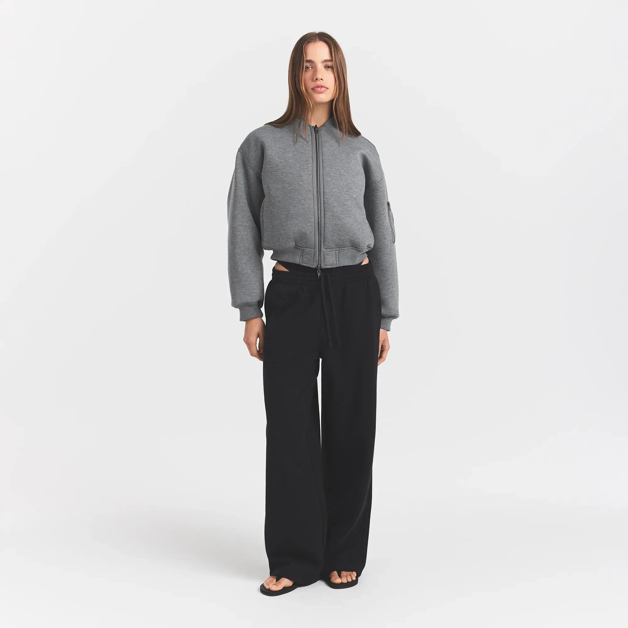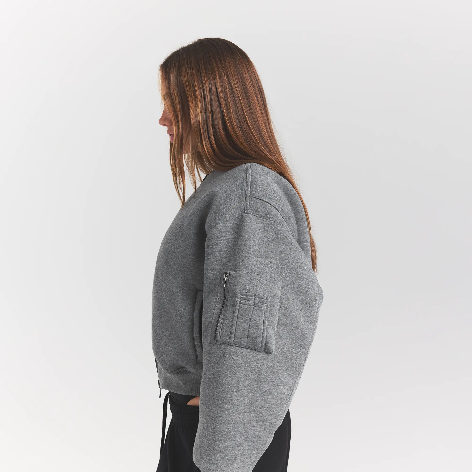SKIMS NEOPRENE OUTERWEAR REVERSIBLE BOMBER JACKET | DARK HEATHER GREY